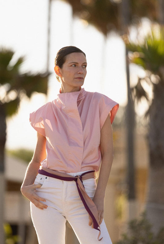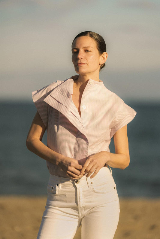 CAMISA LATERAL MANGA CORTA RAYAS ROSAS