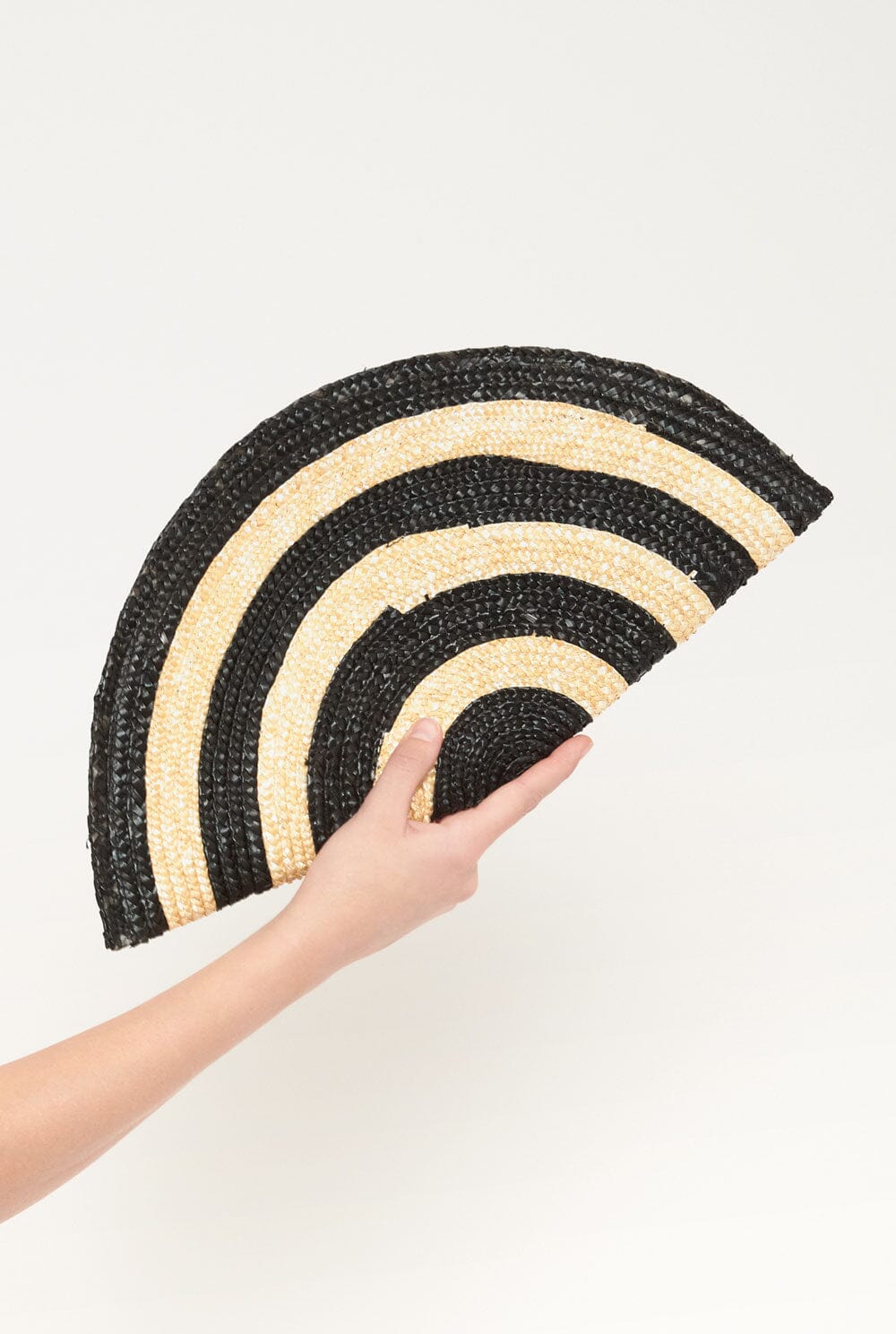 El bolso abanico es un bolso abanico creado con paja de trigo trenzada a mano. Un bolso llamativo y cómodo que llamará la atención en cualquier lugar. Diseñado por Zahati.