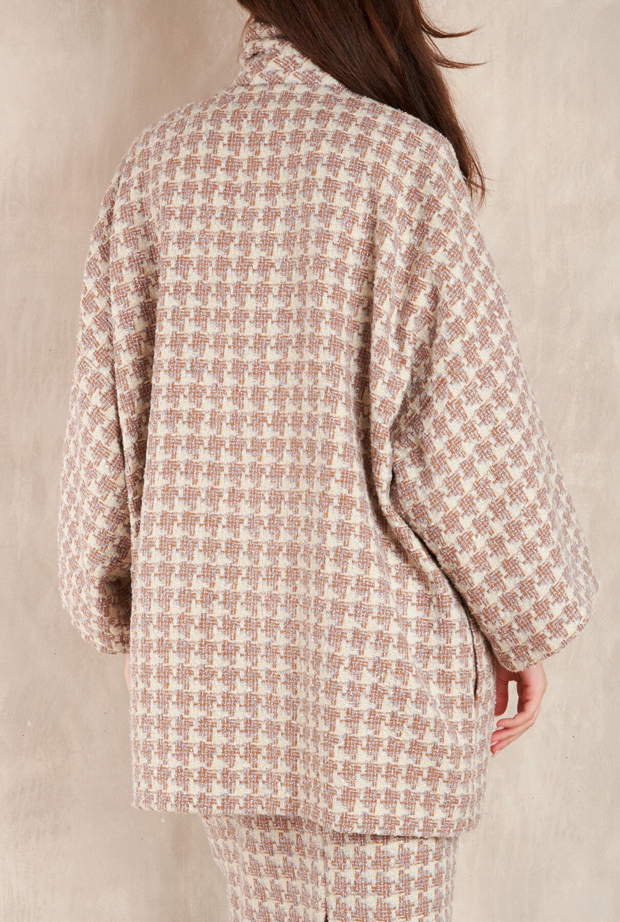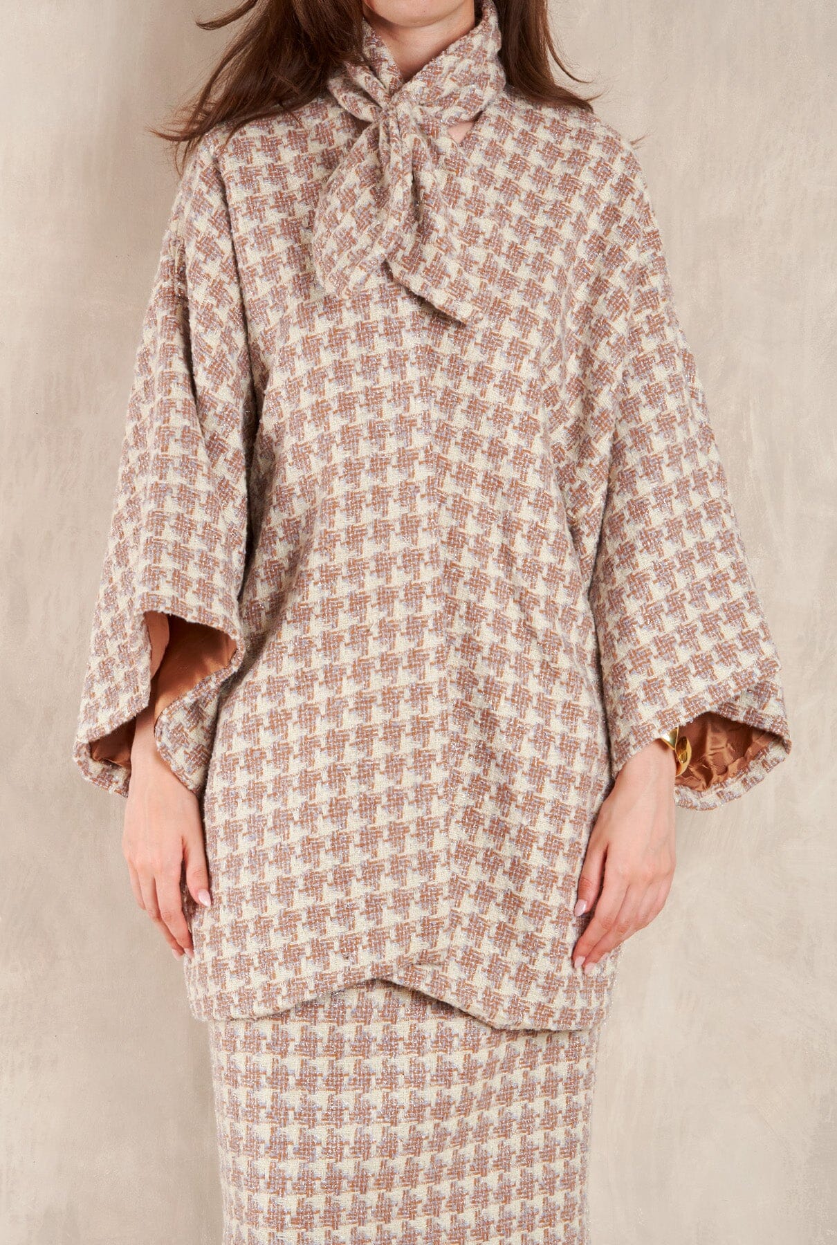 Abrigo cuadrado con pañuelo de lazo de pelo de cordero