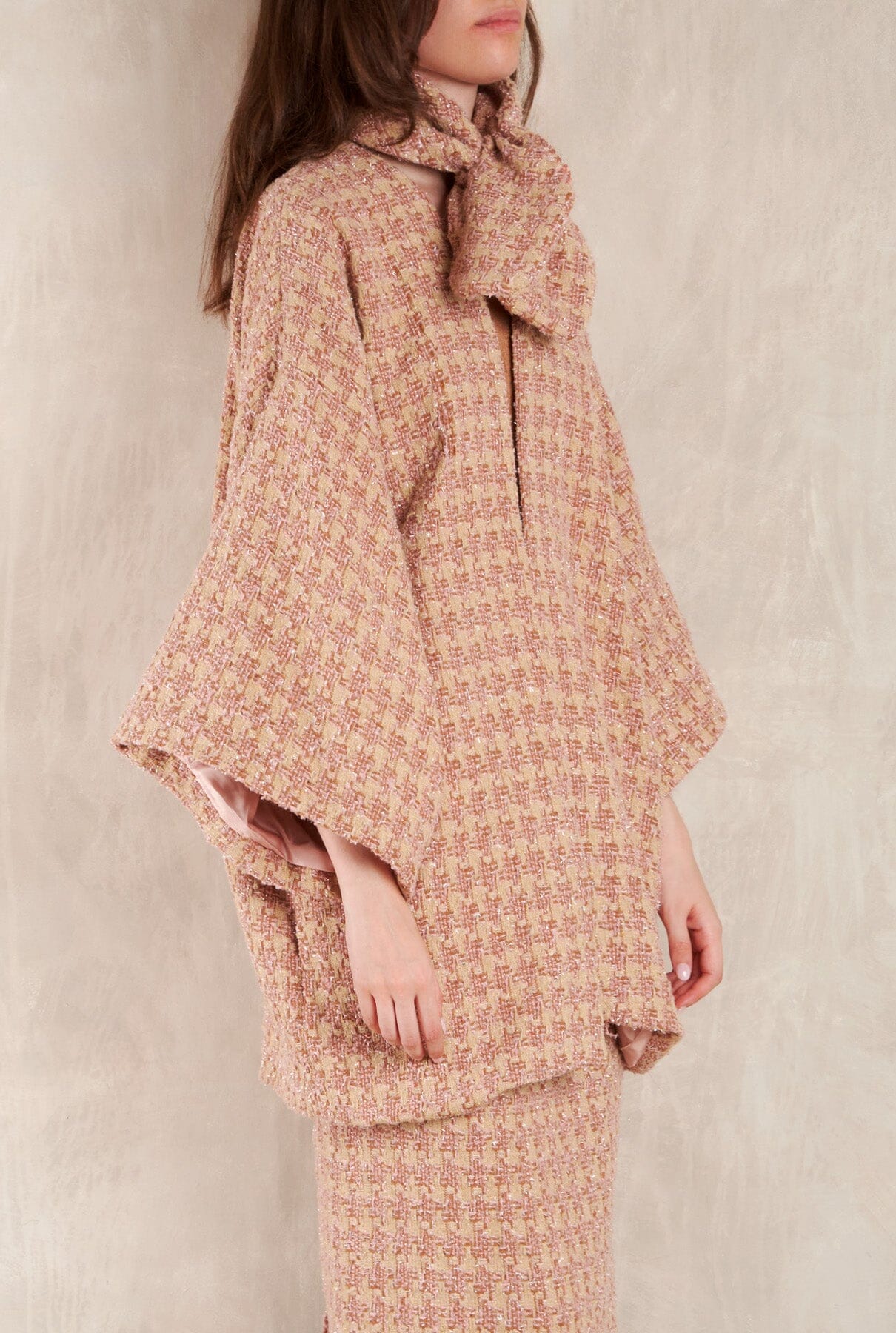 Abrigo cuadrado con pañuelo de lazo de pelo de cordero