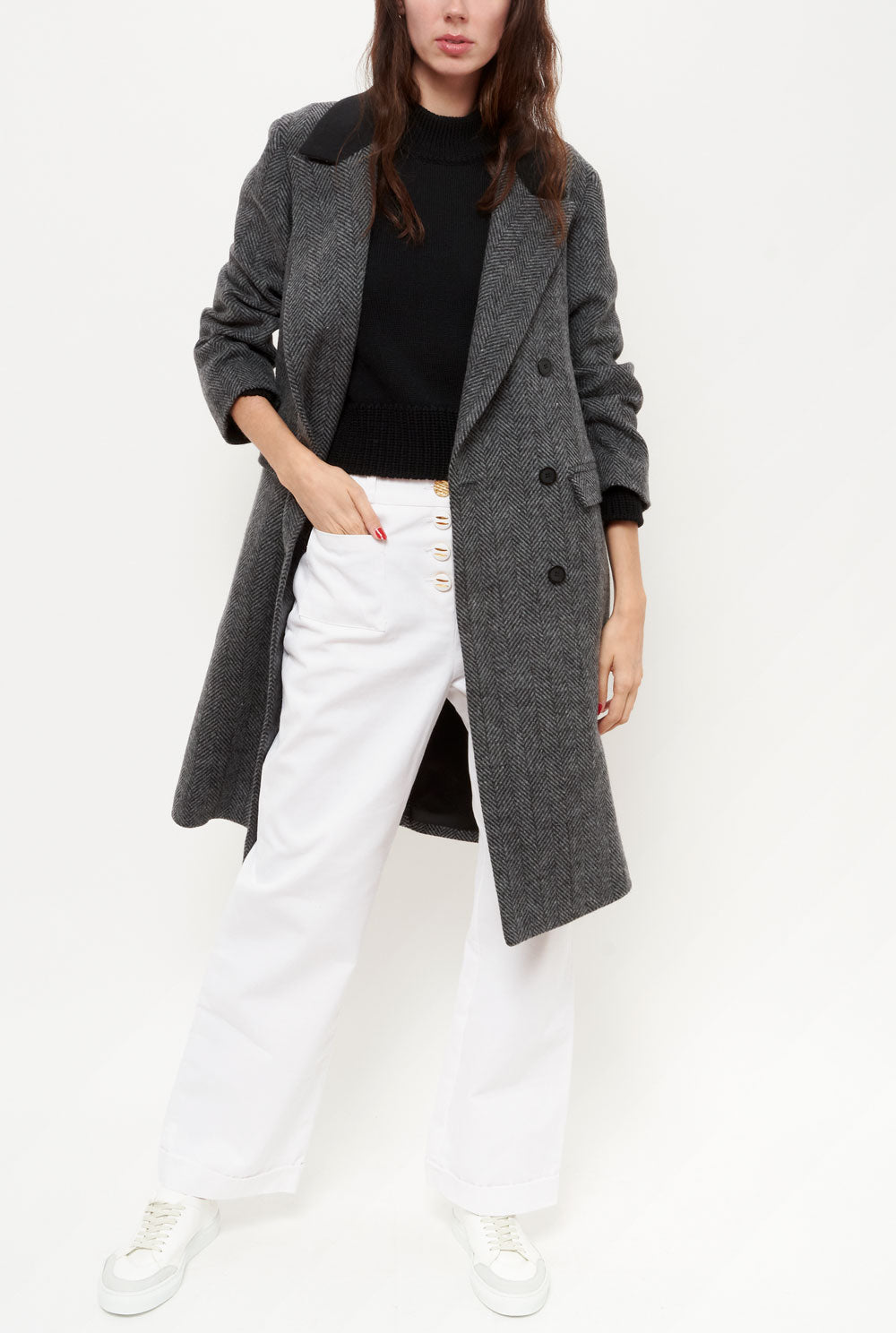Abrigo de espiga gris. Diseñado por Kolonaki.