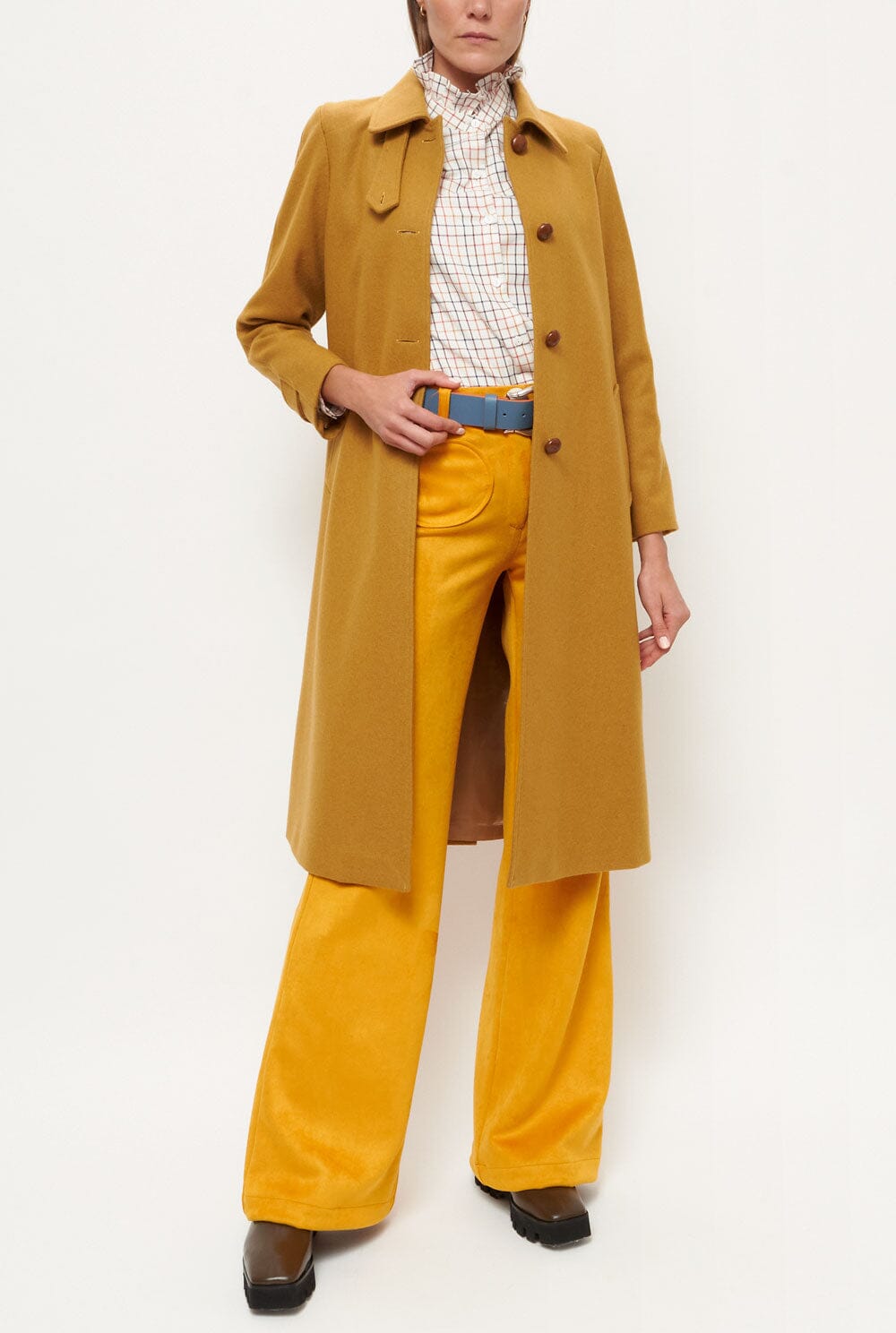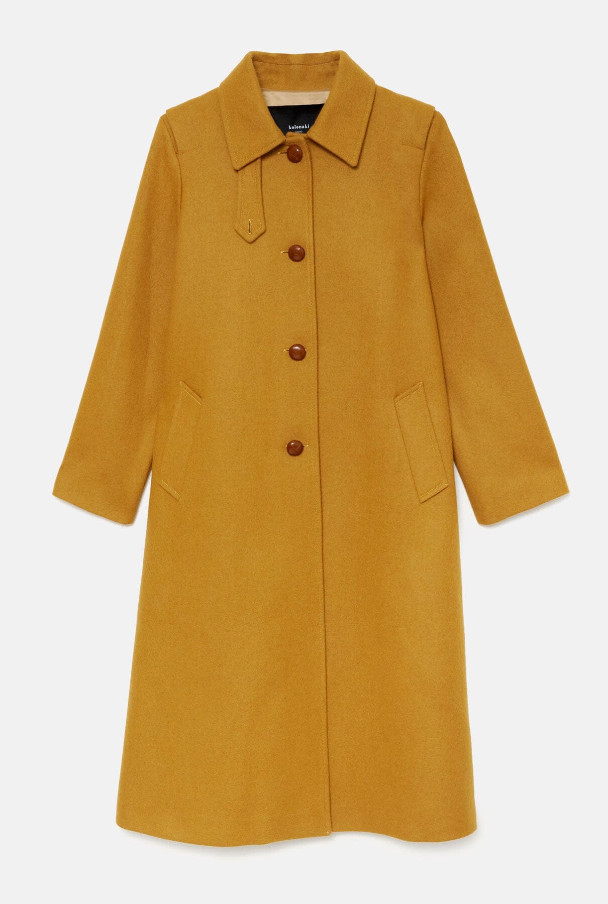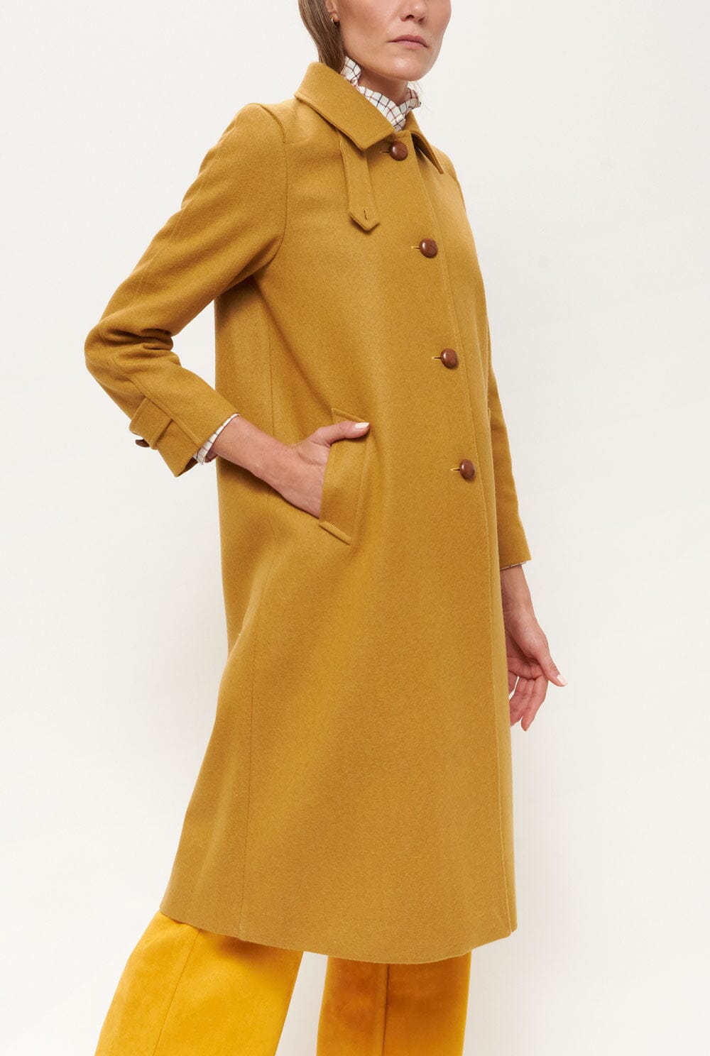 Abrigo largo loden en paño camel. Diseñado por Kolonaki.