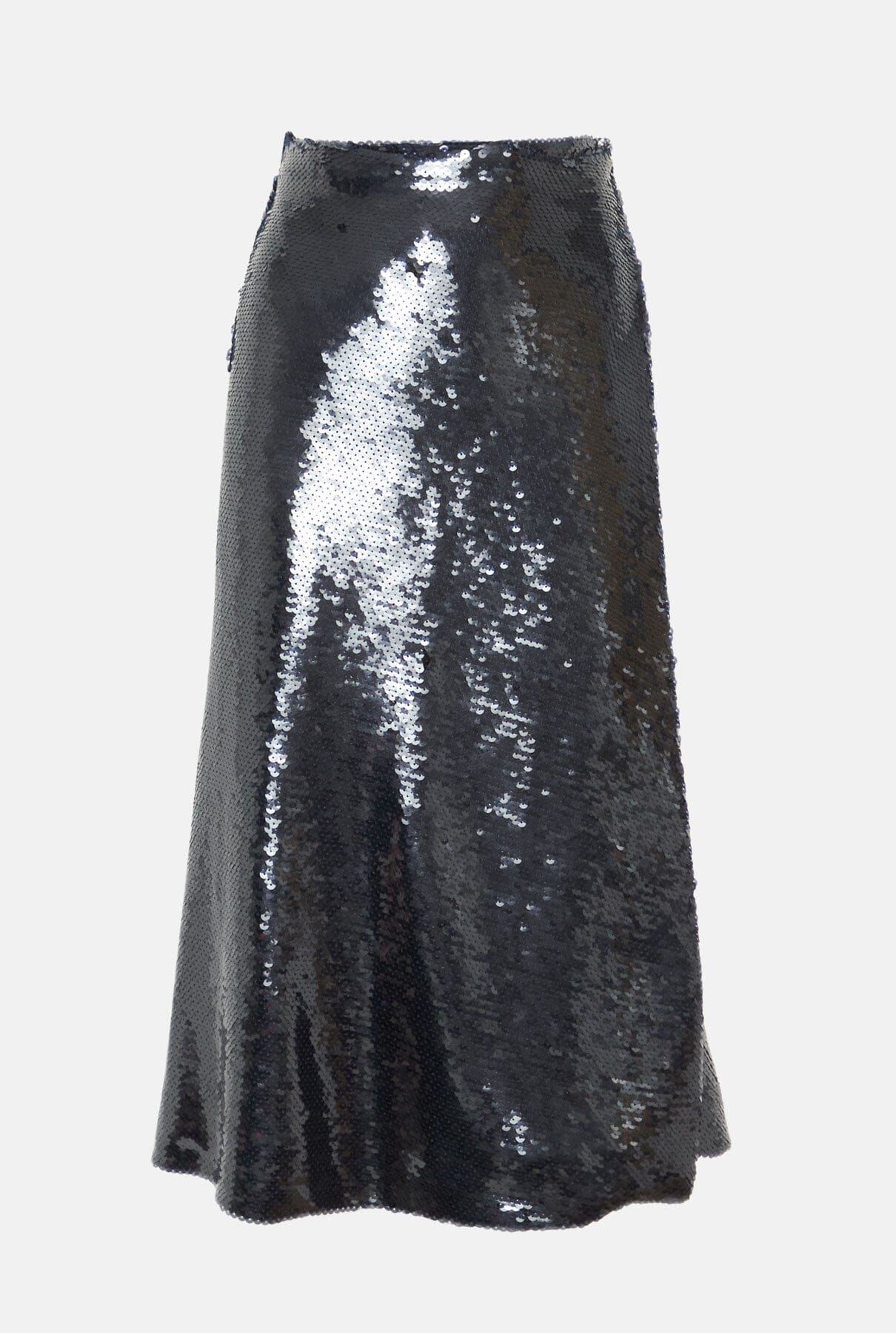 Falda pareo midi con lentejuelas de alta calidad y abertura lateral delantera.