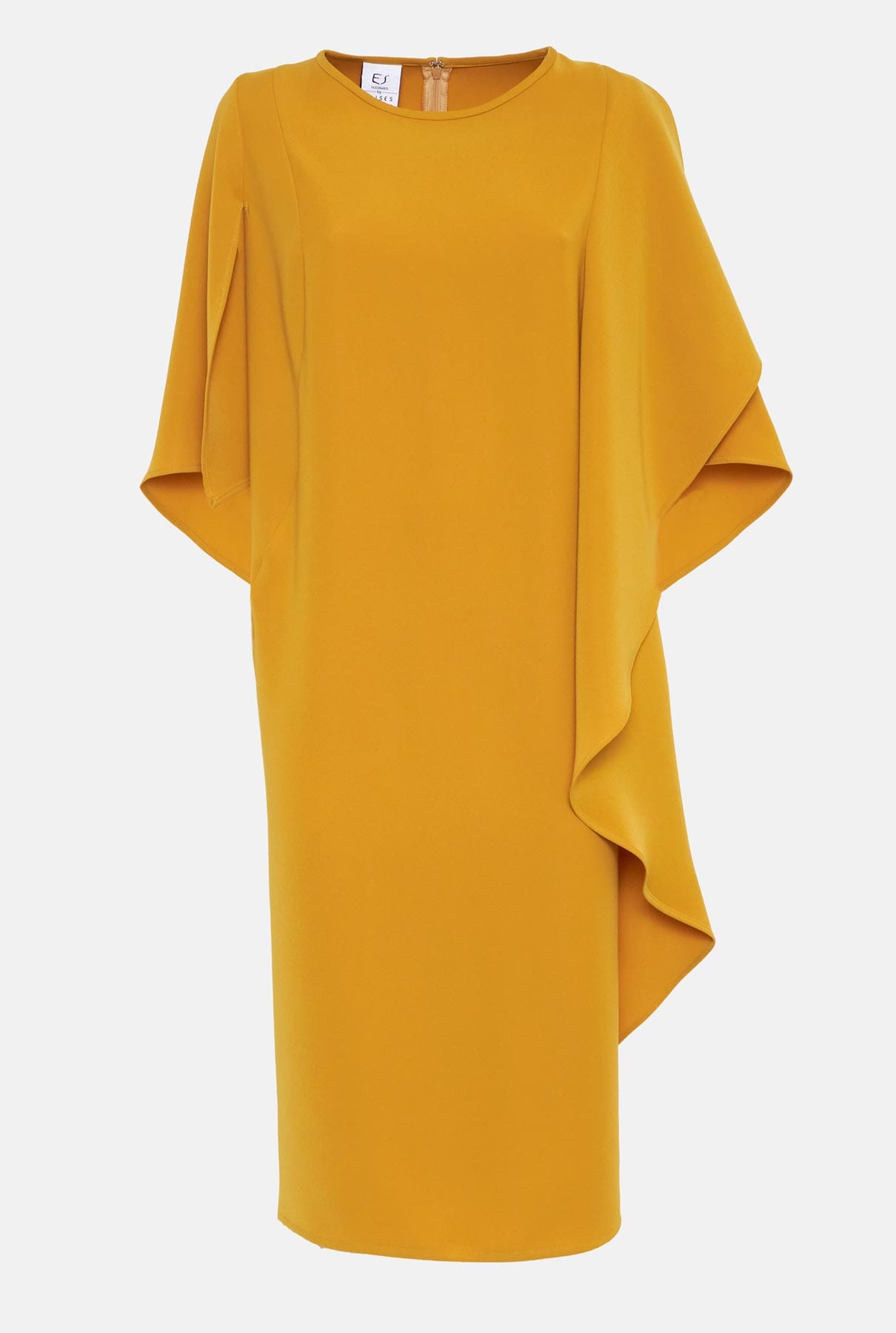Vestido de crep con manga capa. Cremallera trasera invisible. Diseñado por Ulises Mérida.