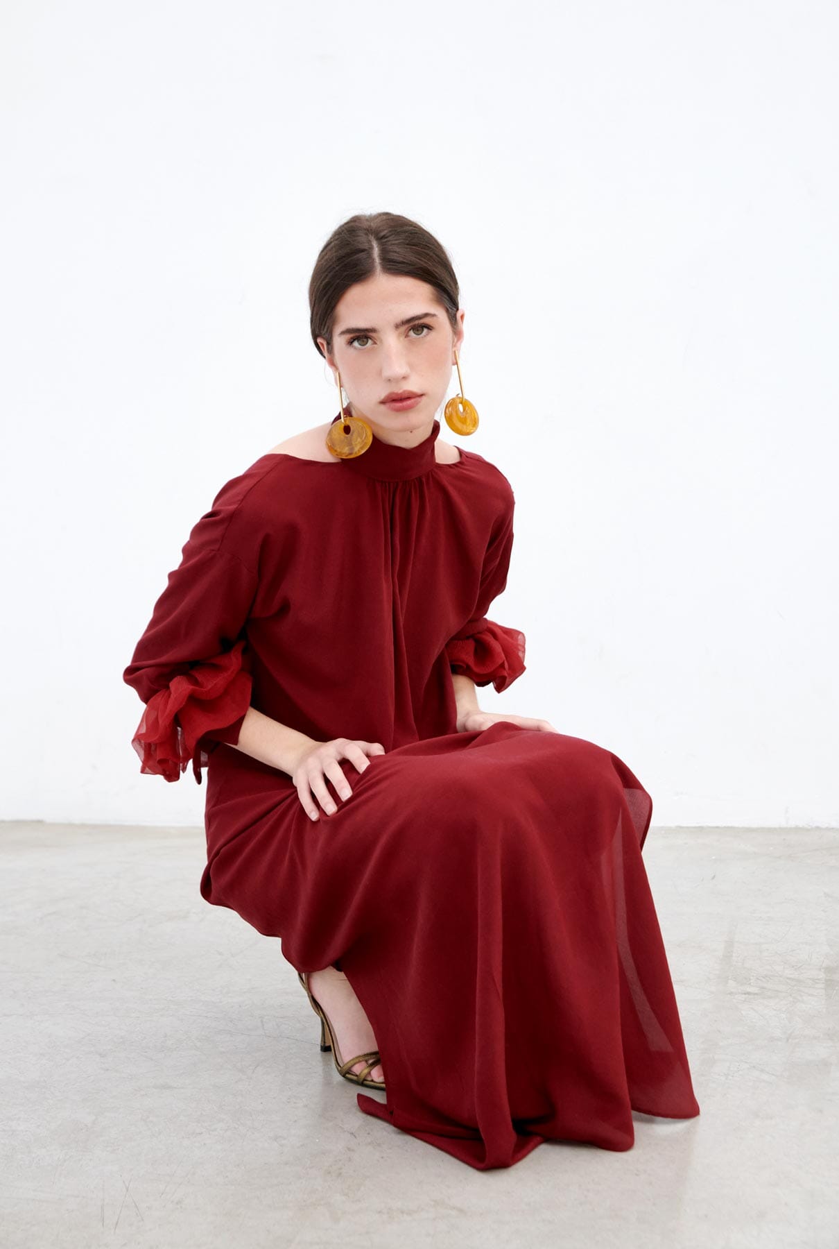 Vestido con mangas de organza, mangas de organza teñidas de forma natural.