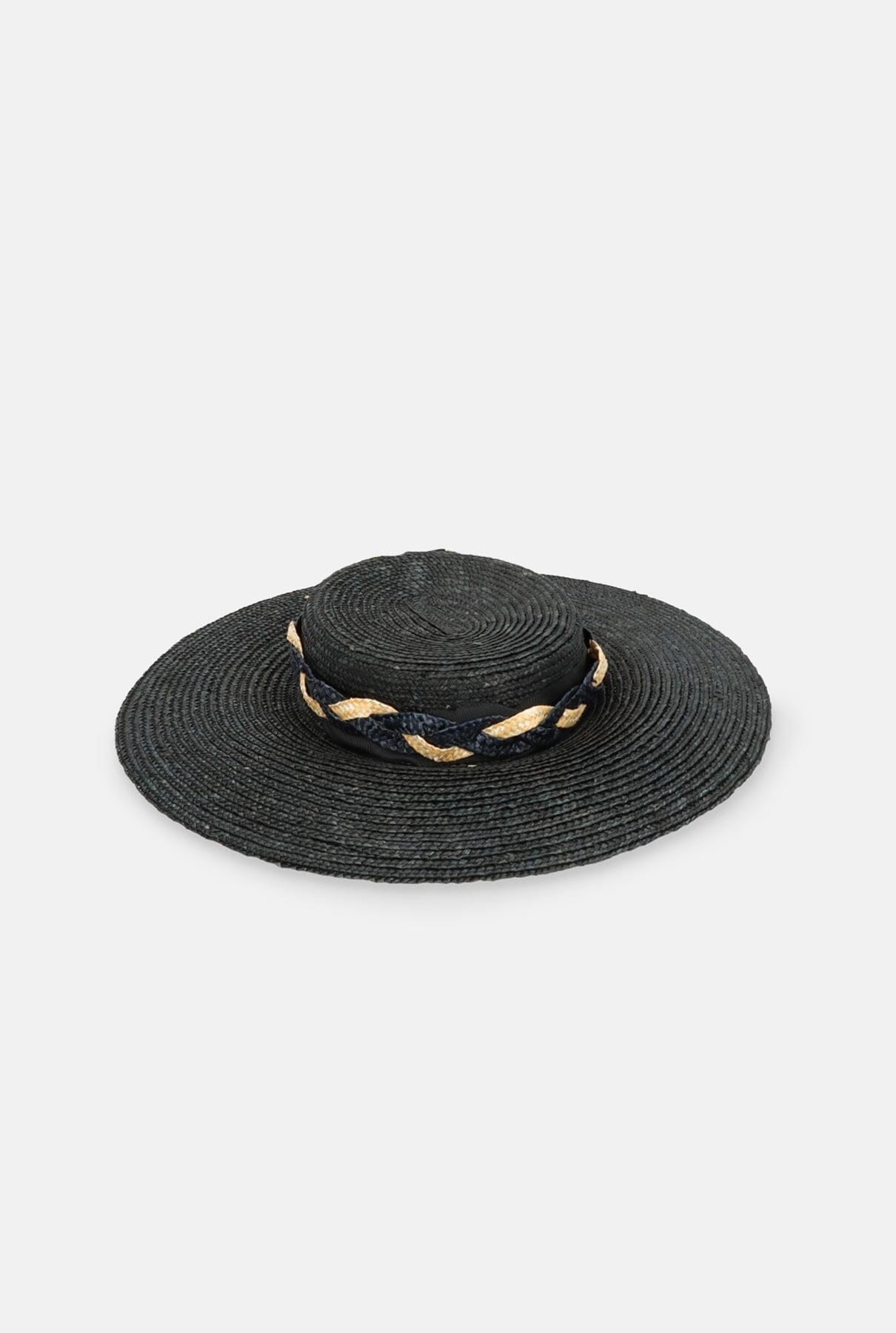 El sombrero andaluz de trenza está elaborado con paja de trigo. Tiene una copa baja y se sujeta a la cabeza con una diadema. Alrededor de la copa hay una fina trenza tejida a mano con fibras naturales. Ideal para looks de invitada.