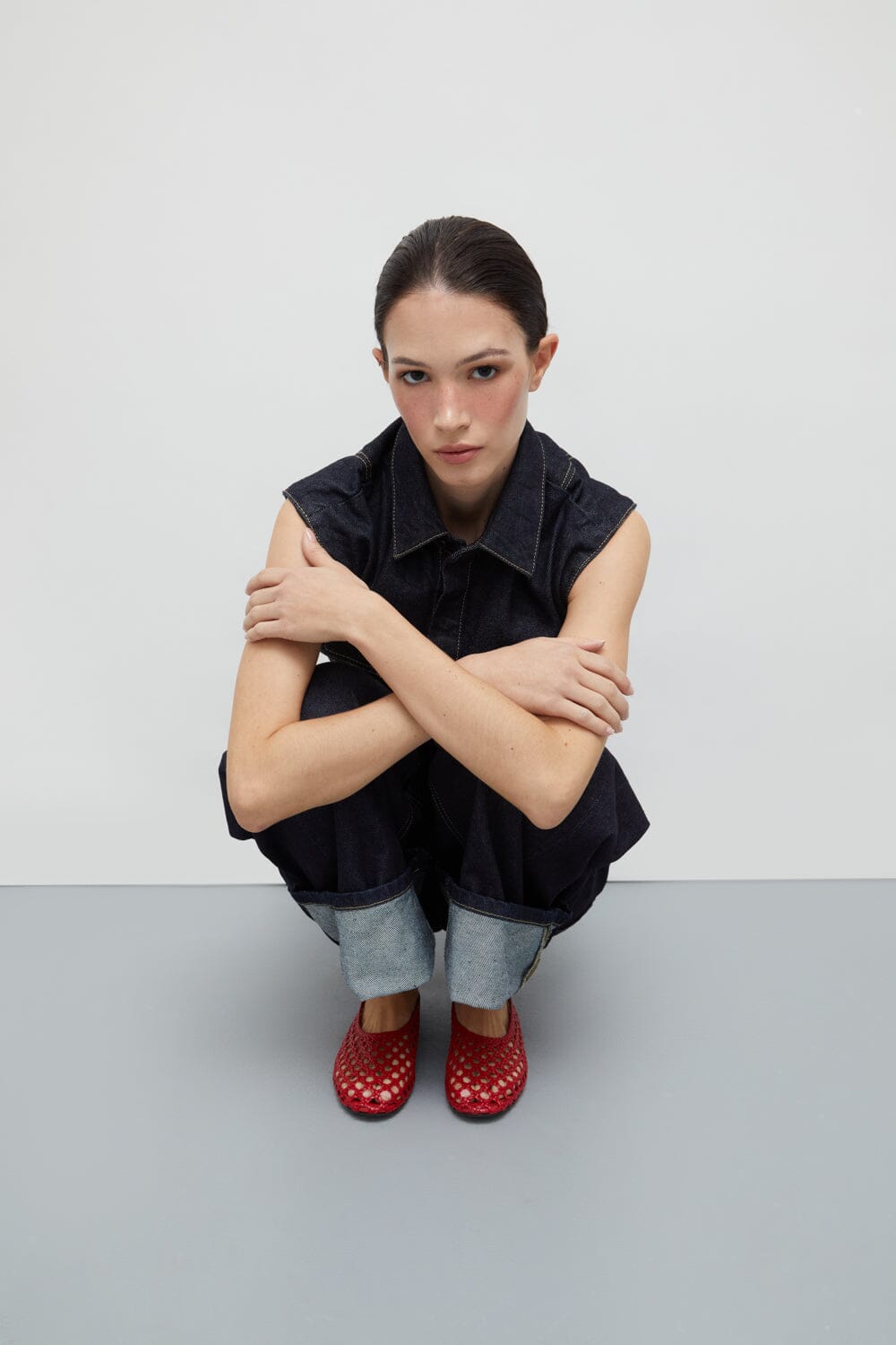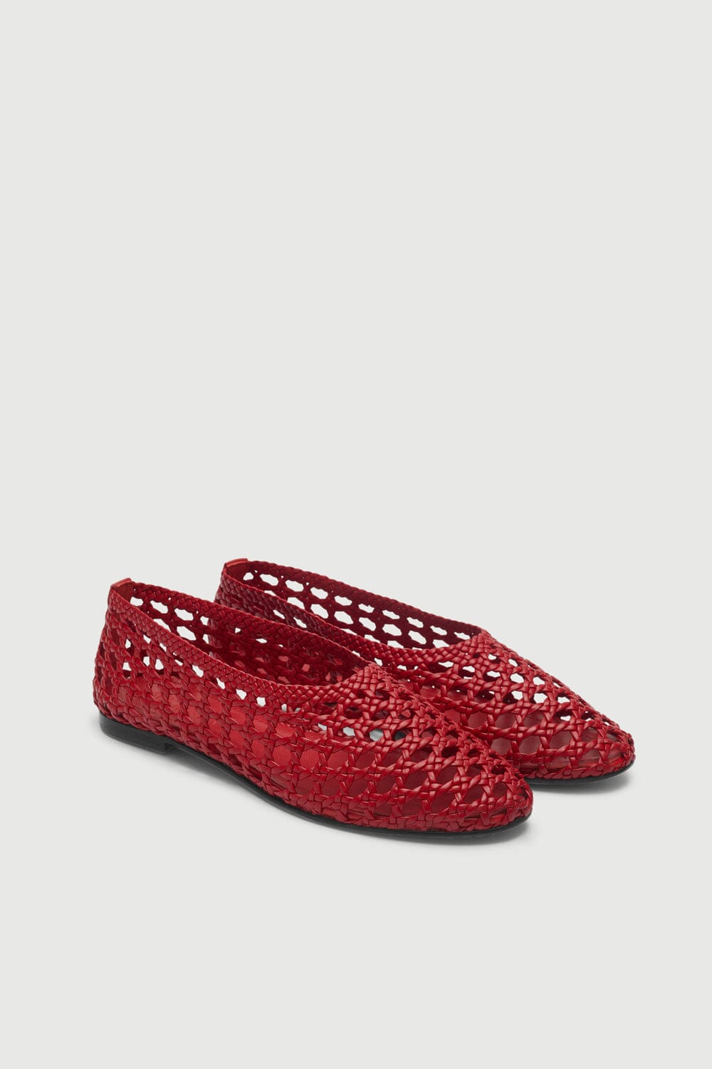 Embrace artisanal craftsmanship with these stunning hand-woven red flats. Meticulously crafted with braided leather, each pair showcases intricate detailing that gives them a truly unique and breathable design. The vibrant red hue adds a bold splash of color, while the open-weave construction ensures both style and comfort, perfect for warmer days. Lightweight and flexible, these flats are as practical as they are eye-catching, making them a versatile addition to your wardrobe. Pair them with casual outfits or flowing dresses for a look that’s effortlessly chic and one-of-a-kind.