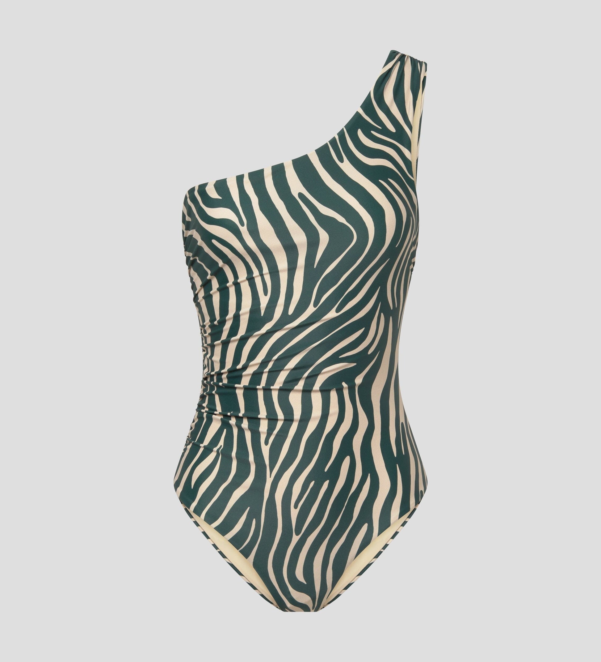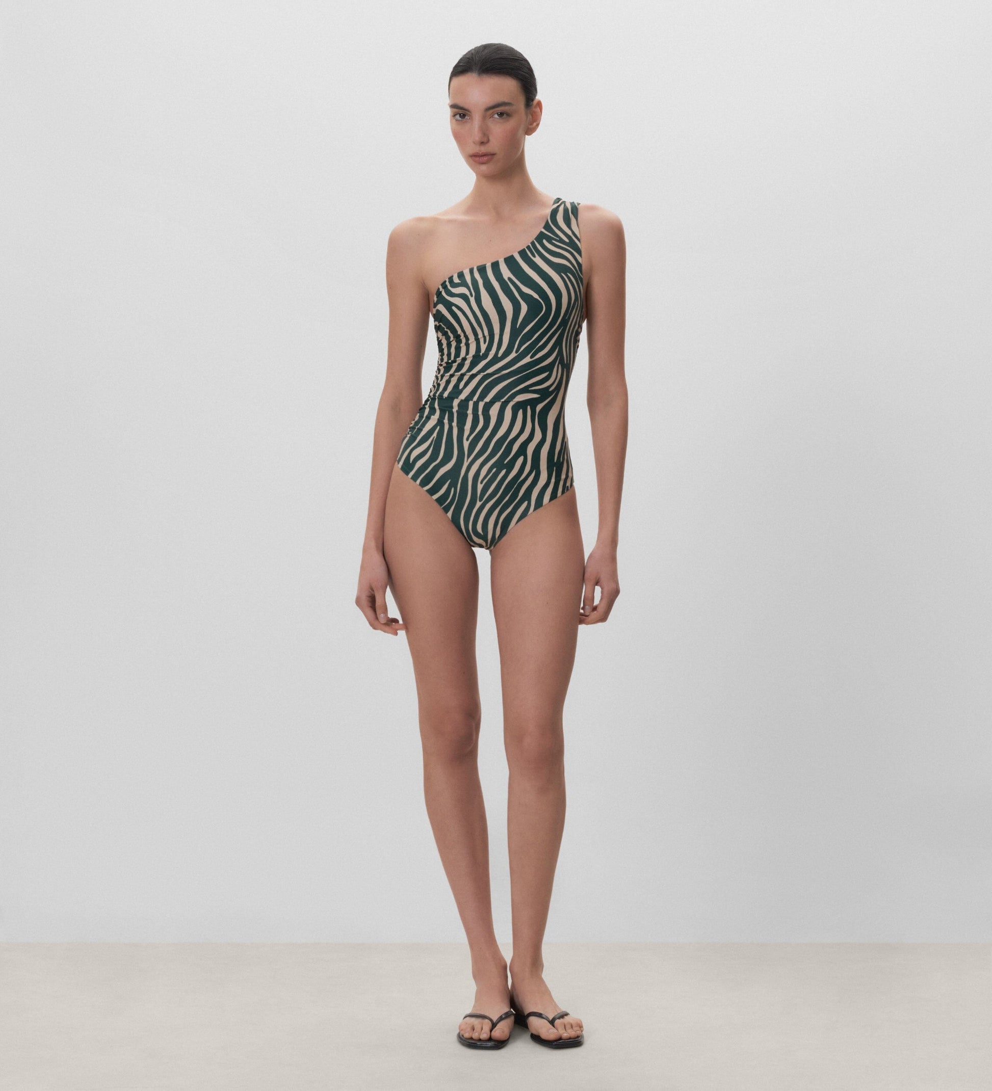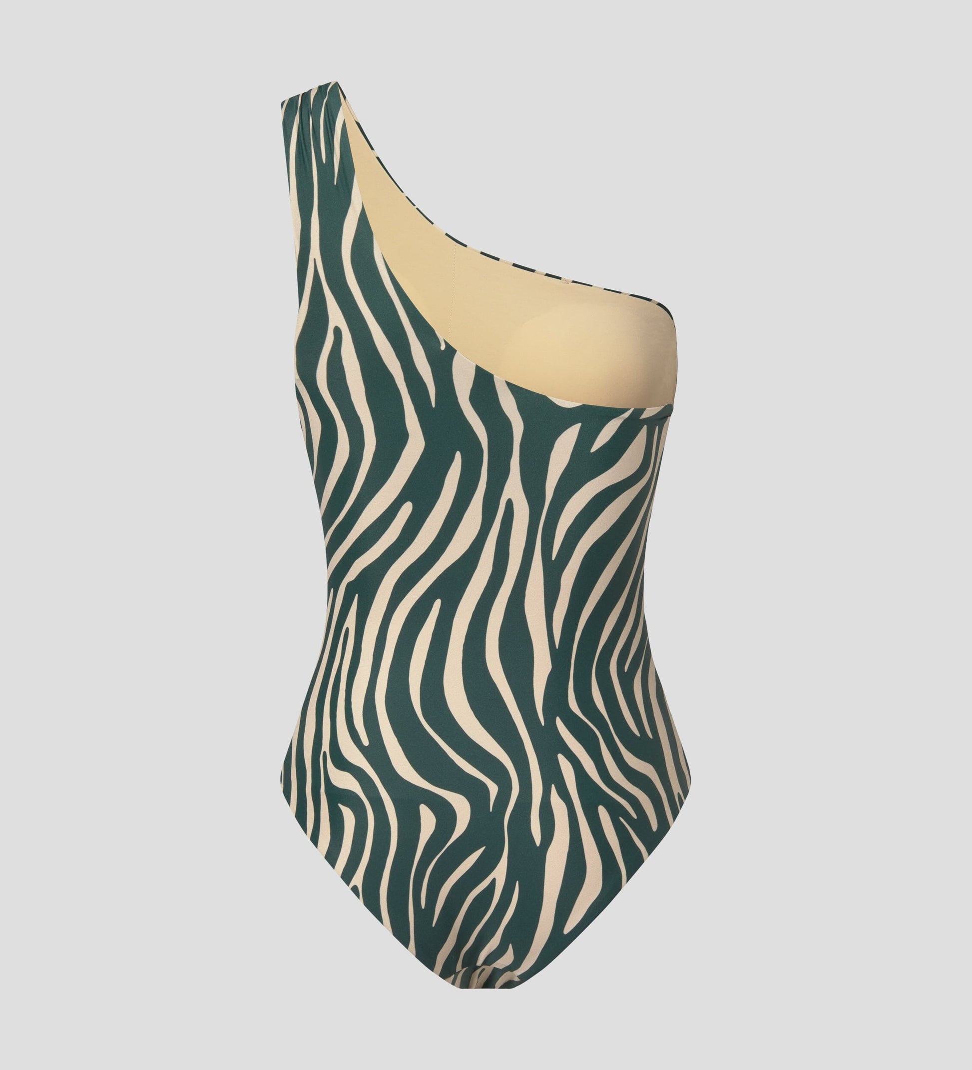 Bañador con escote asimétrico y estampado animal.