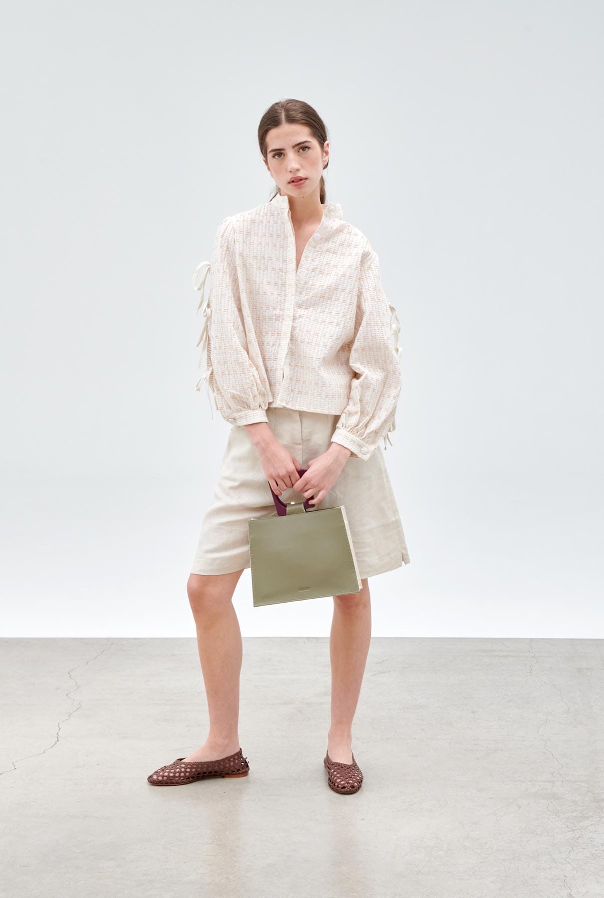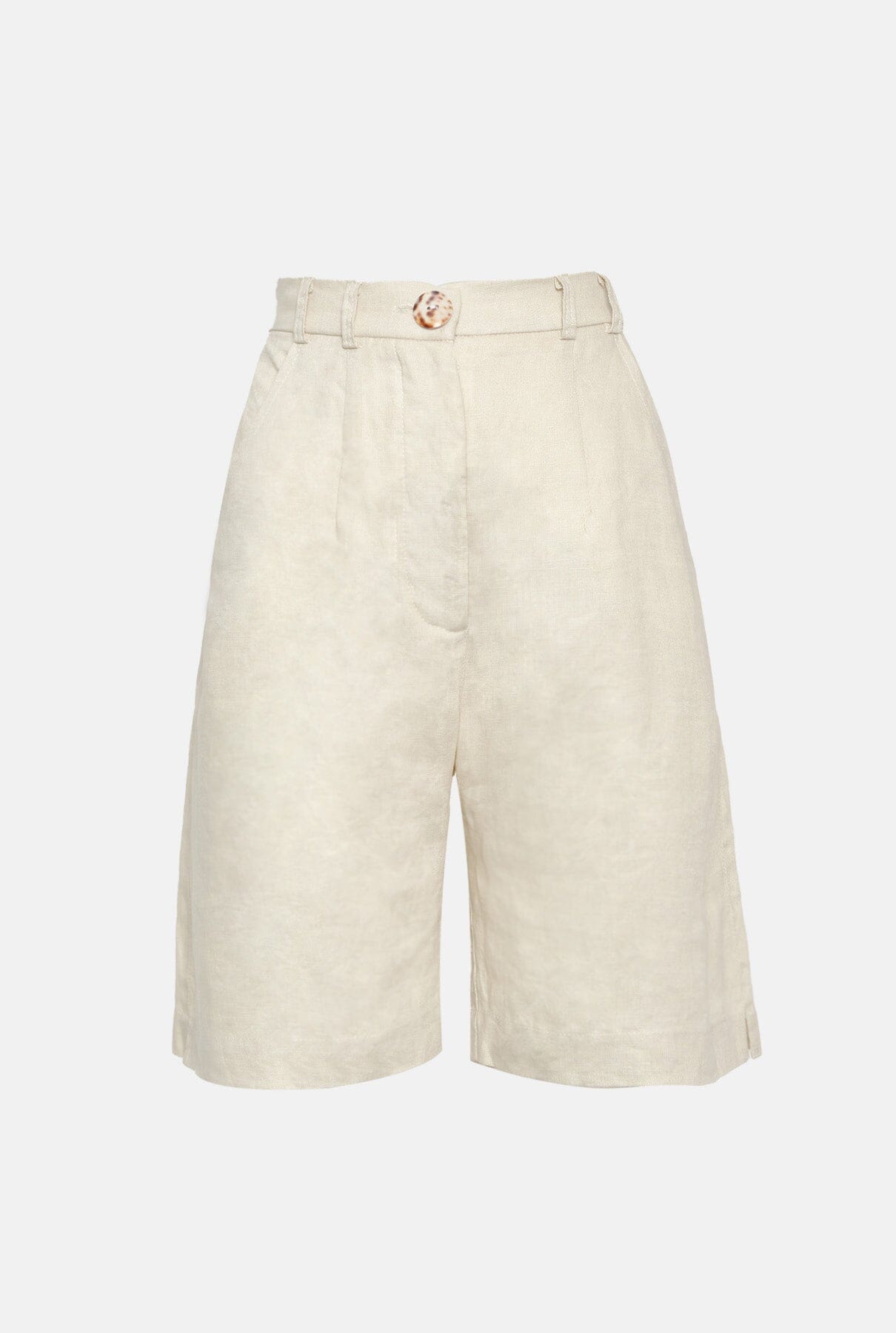 Bermuda confeccionada artesanalmente en nuestro taller de Lanzarote. Bermudas largas confeccionadas en lino. Tiro medio y cintura con trabillas. Bolsillos delanteros. Cierre frontal con cremallera y botón.