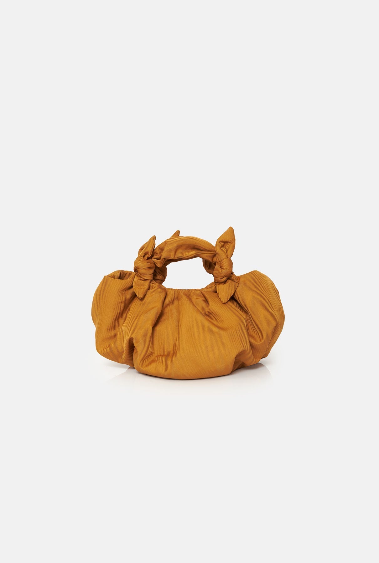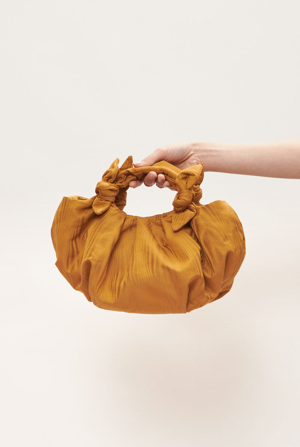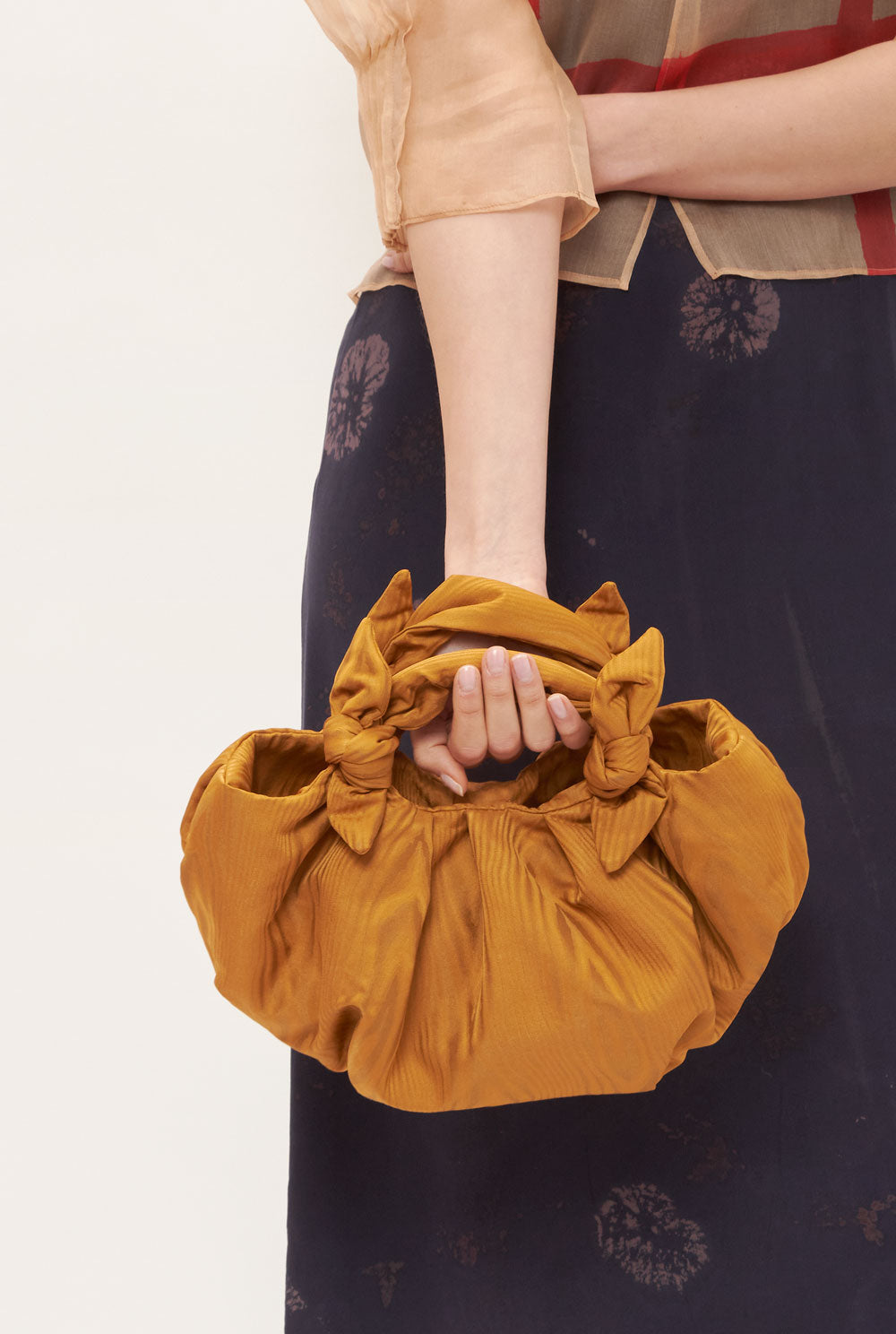 Este bolso Bernatta está elaborado en satén de seda lustroso y suave. Es un bolso de mano suave con asas anudadas y cierre de botón. Este bolso está fabricado en España con tejidos de seda del icónico proveedor de tejidos de Barcelona: Gratacós.