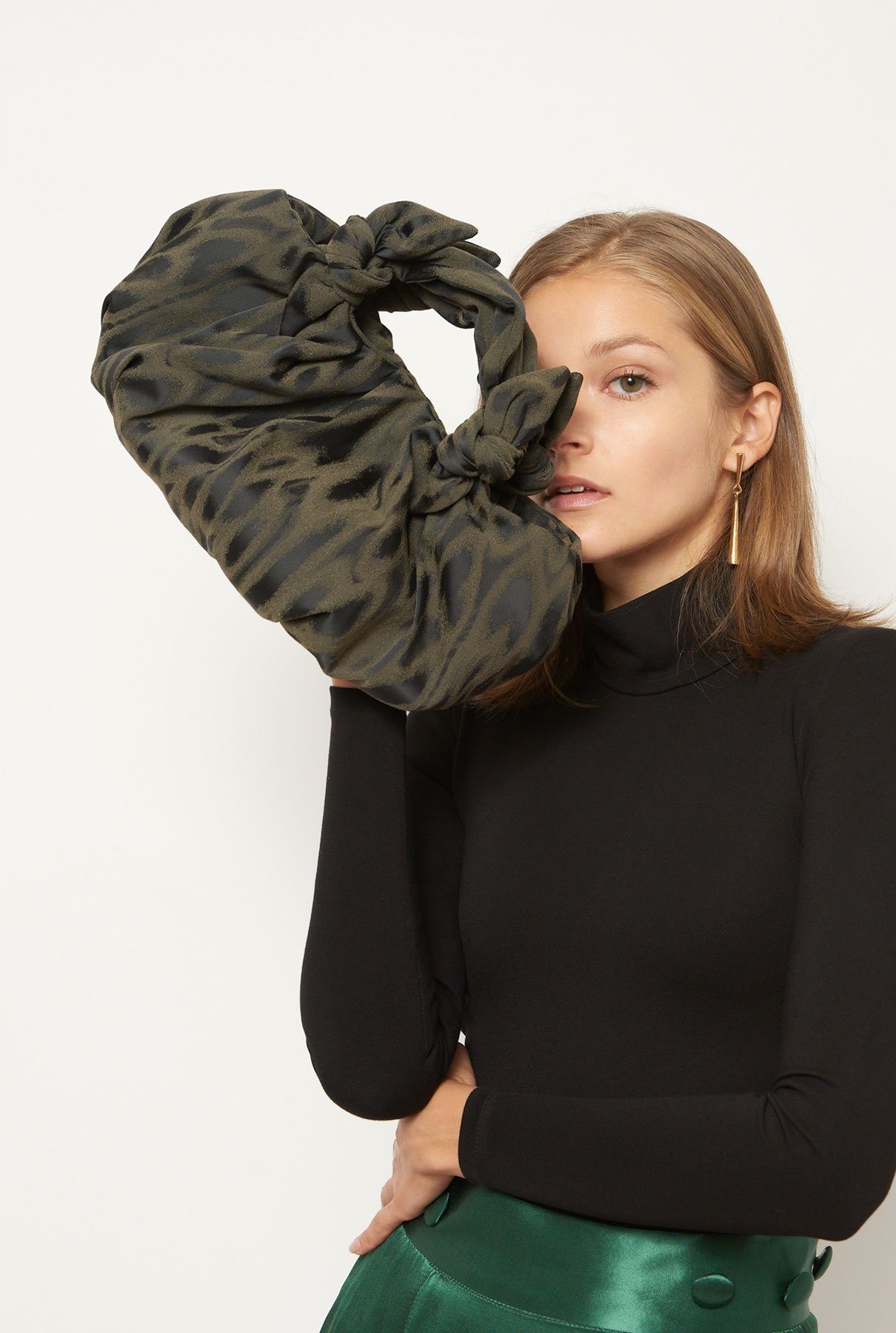 El bolso Bernatta está confeccionado en lustroso y suave satén de seda. Se trata de una suave pochette con asas anudadas y cierre de botón.Este bolso está confeccionado en España con tejidos de seda del emblemático proveedor de tejidos de Barcelona: Gratacós.