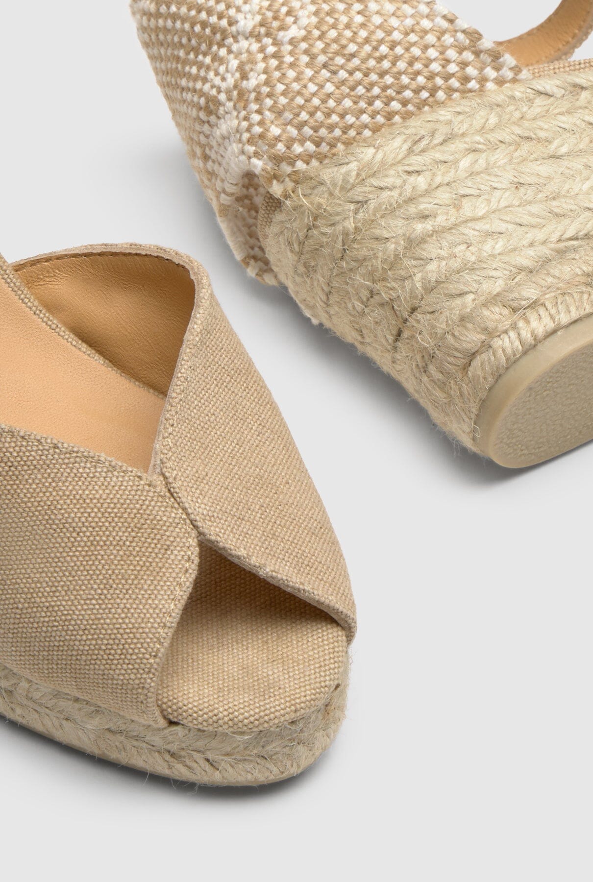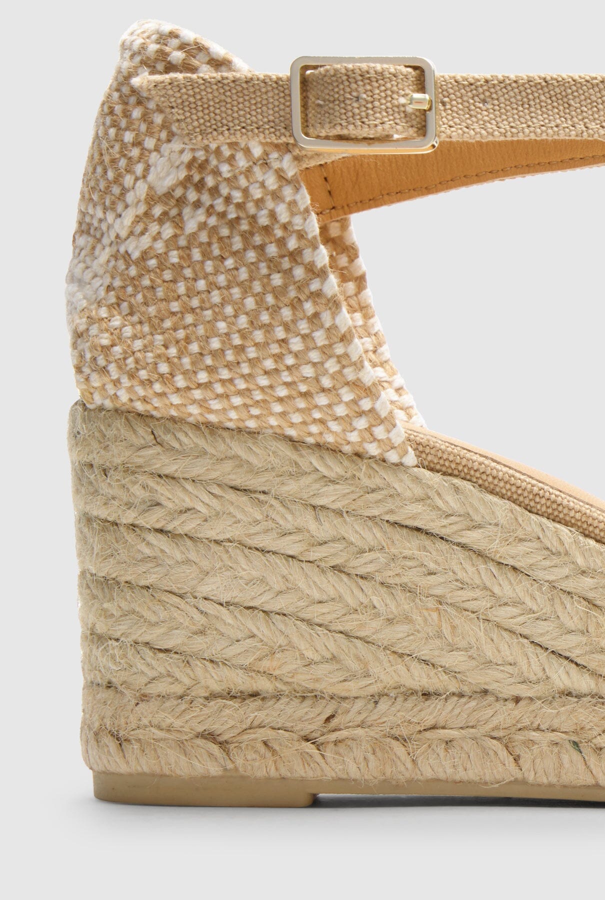 Realza tus looks con nuestras alpargatas Bianca, un modelo único que derrocha personalidad. Hechas a mano en España en algodón orgánico certificado y acabado lavado sostenible. Las alpargatas Bianca se convertirán en tus mejores aliadas para el día a día. Cuentan con puntera abierta redondeada, cierre de hebilla lateral con hebilla metálica, tacón de 7cm y suela de goma vulcanizada.