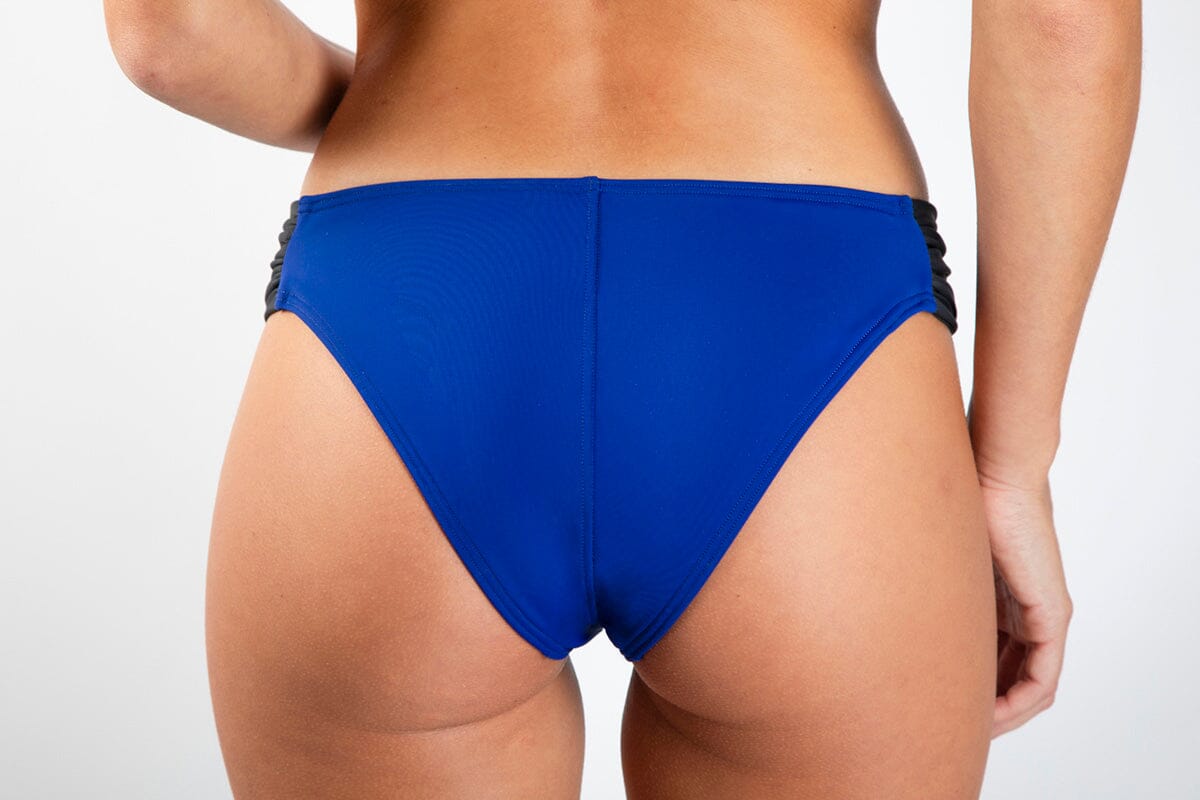 La braguita de bikini Cinta, color índigo, con dos tiras laterales, se ajusta con delicadeza, ofreciendo un diseño limpio y moderno que se adapta a tu cuerpo de forma natural. Su corte favorecedor realza la silueta y el forro interior en contraste proporciona comodidad y un acabado impecable.