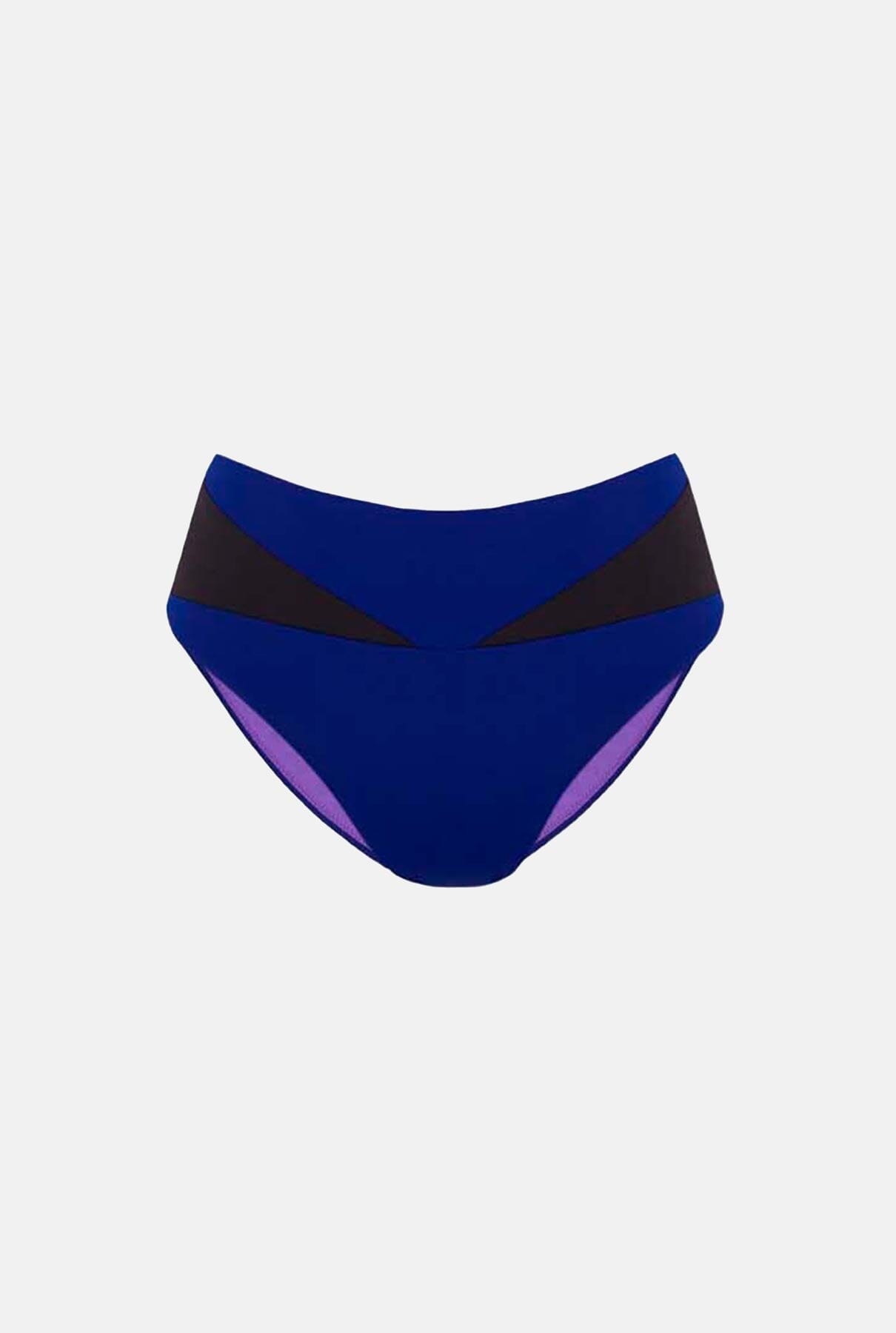 La braguita de bikini Rombo índigo refleja la calma y la elegancia del verano. Su diseño de cintura alta, con una favorecedora forma en V, estiliza y realza la figura con un toque moderno y sofisticado. Los colores contrastantes le dan carácter, mientras que el forro interior garantiza un ajuste suave y cómodo para usar durante todo el día.