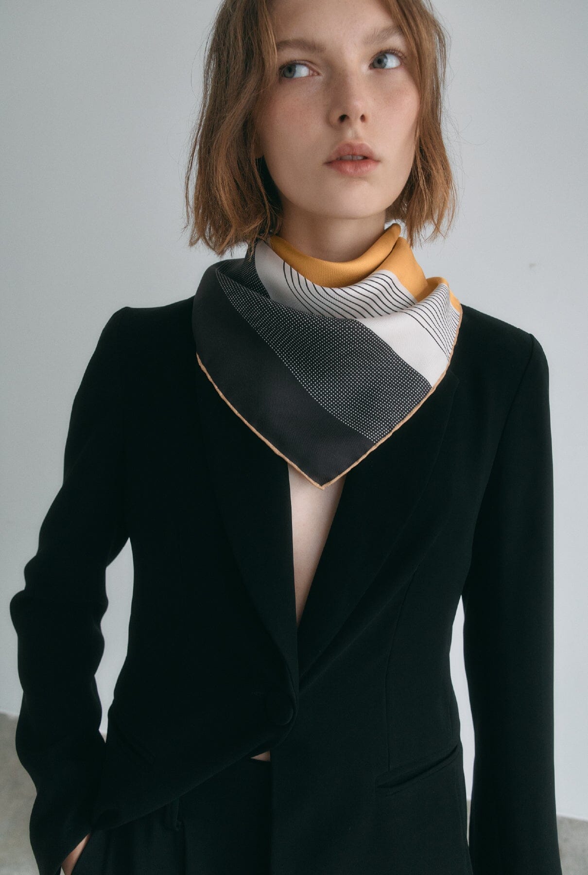 | Edición limitada diseñada por Carrie Van Hise. Pañuelo cuadrado de seda con diseño de lunares y bloques de color. El pañuelo Block se puede usar como pañuelo para el cuello, pañuelo para la cabeza o colgado de tu bolso favorito. Fabricado en España. Bordes enrollados a mano. |