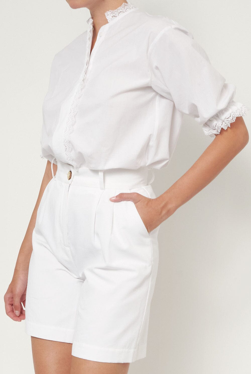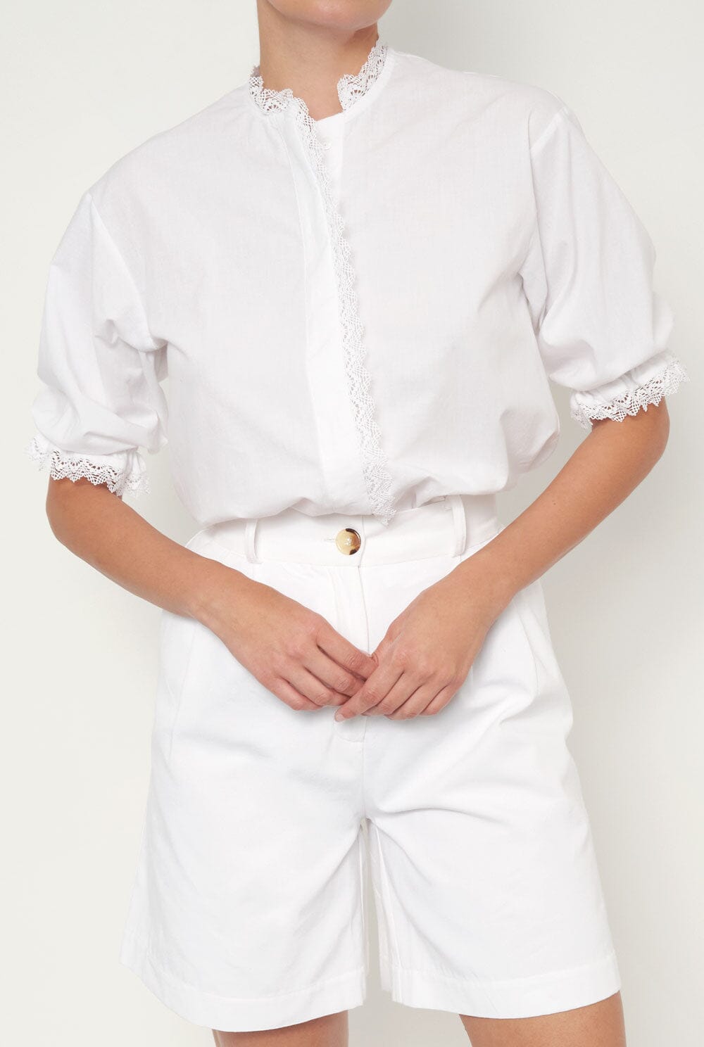 Blusa de algodón blanca con ribete de encaje.