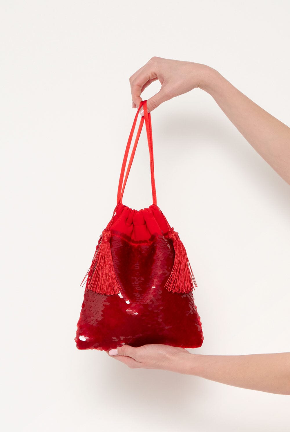 El bolso de lentejuelas Rocio añadirá el toque de glamour nostálgico de los años 20 a tus looks de diario y de fiesta. Fabricados orgullosamente en España, los bolsos de Laia Alen tienen un tacto suave y una forma sencilla con cierre de cordón para abrocharlos fácilmente.