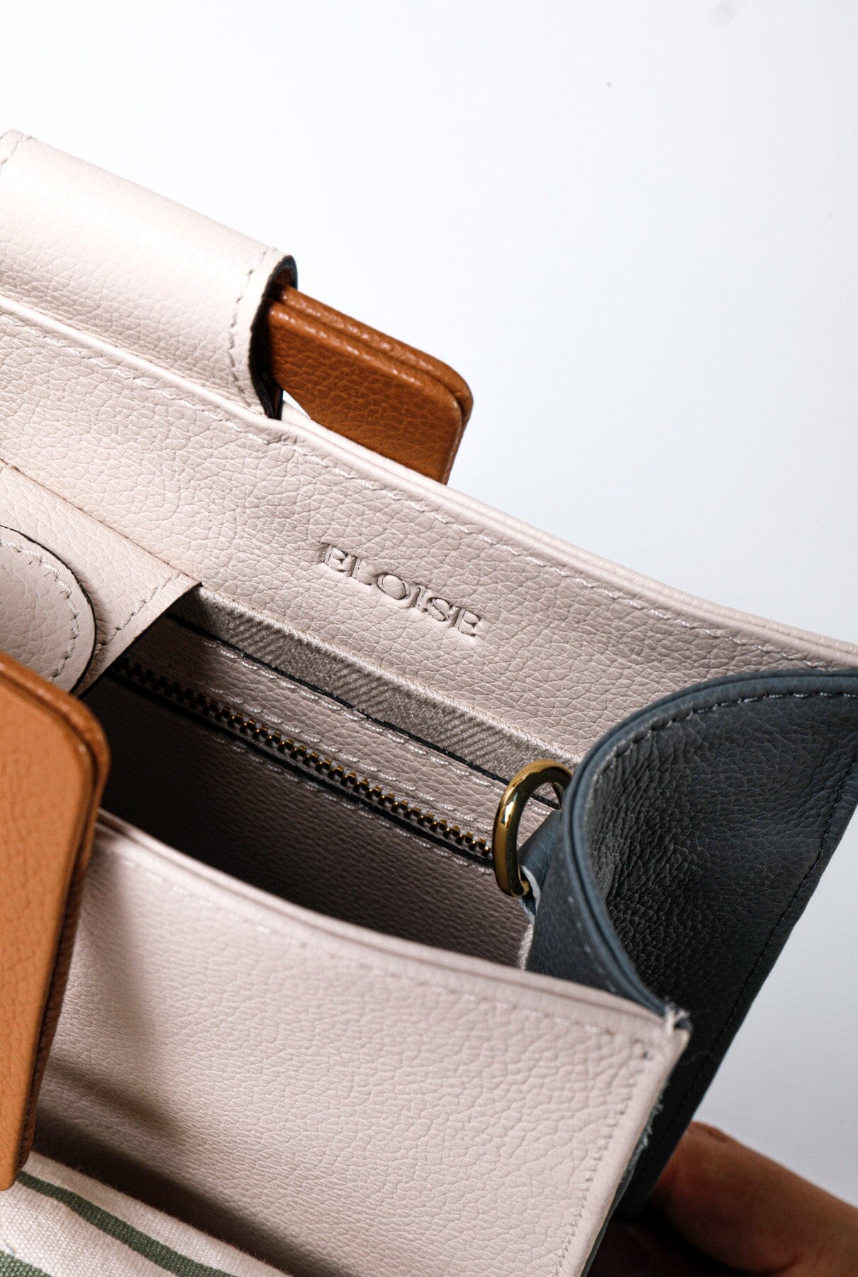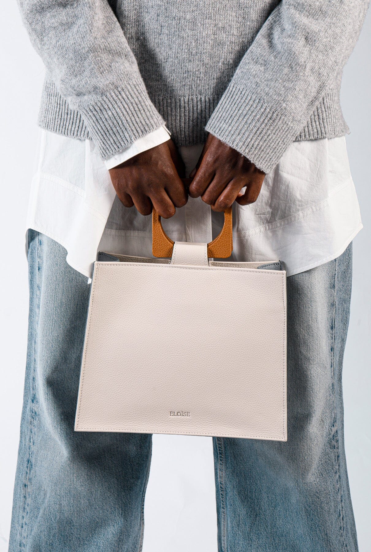 Bandolera regulable y extraíble. Cierre magnético discreto. Forro interior de espiga en color crudo.