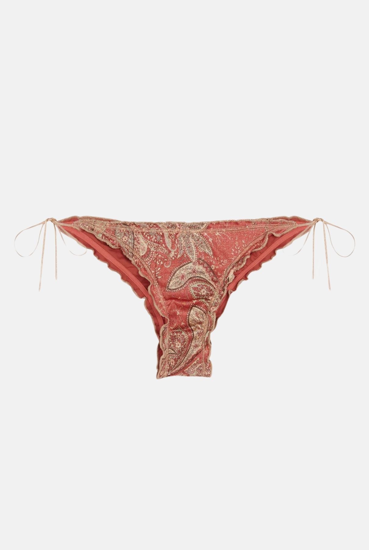 Tejido de punto con estampado de purpurina de lurex y estampado paisley en color rojo.
