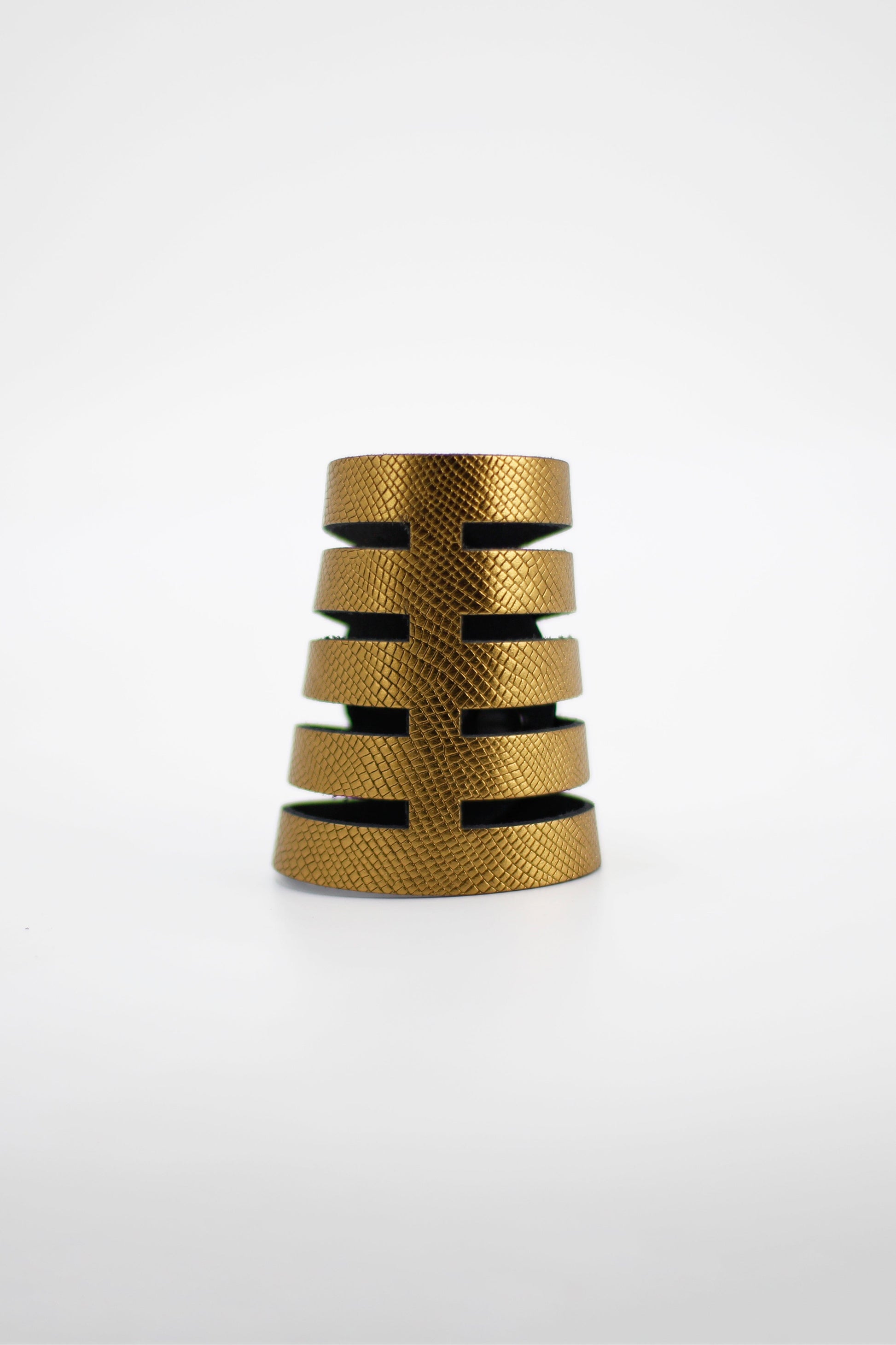 Nuestro nuevo brazalete Sol dorado se distingue por su originalidad y estilo único. Fabricado en piel con un diseño estructural elegante y cómodo, es una pieza versátil que complementa cualquier look. Su diseño permite llevarlo directamente sobre la piel como sobre la ropa, asegurando que siempre destaque. Incluso se pueden llevar uno en cada brazo para un estilo más llamativo.