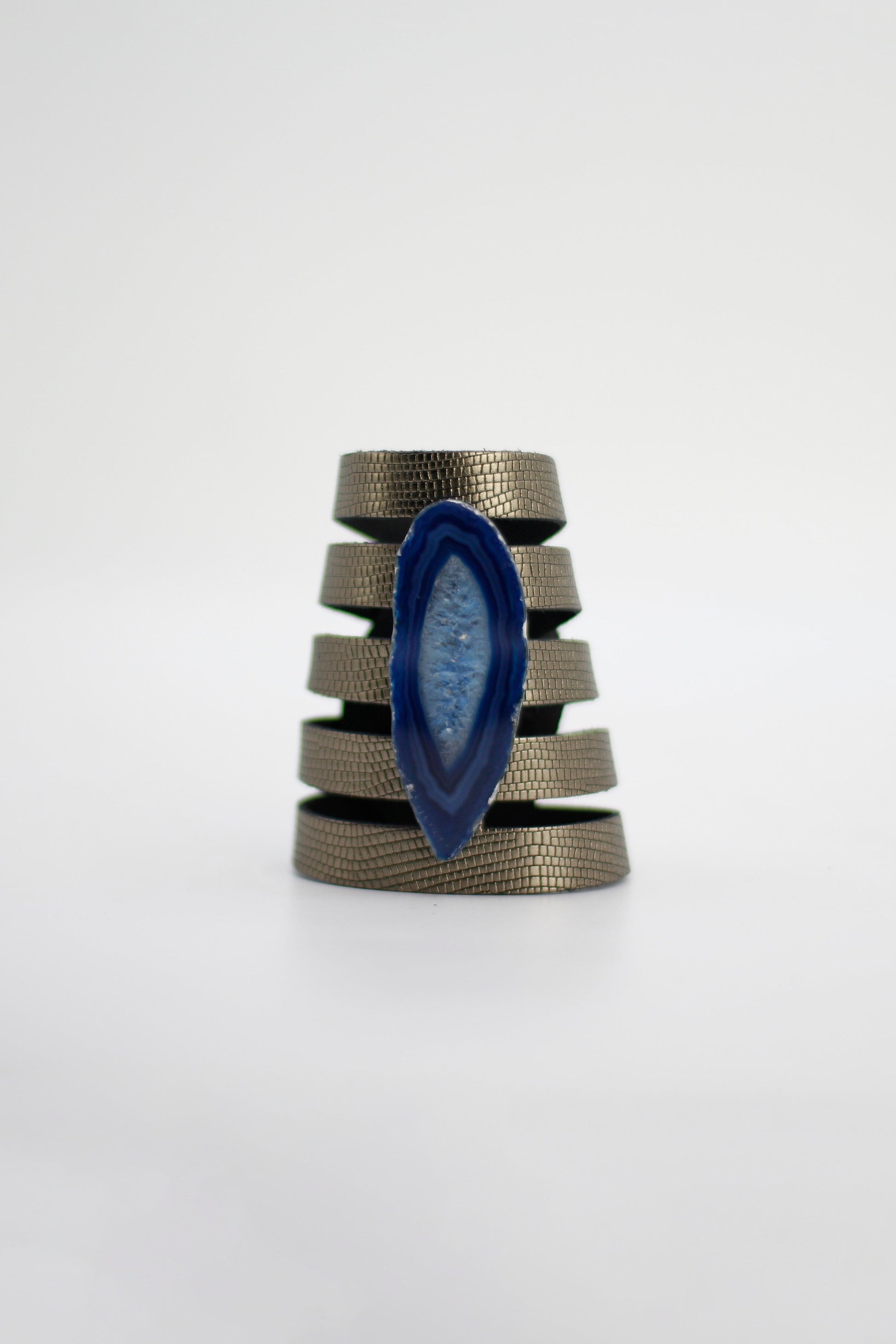 Brazalete Sol Grabado Plomo - Ágata Azul