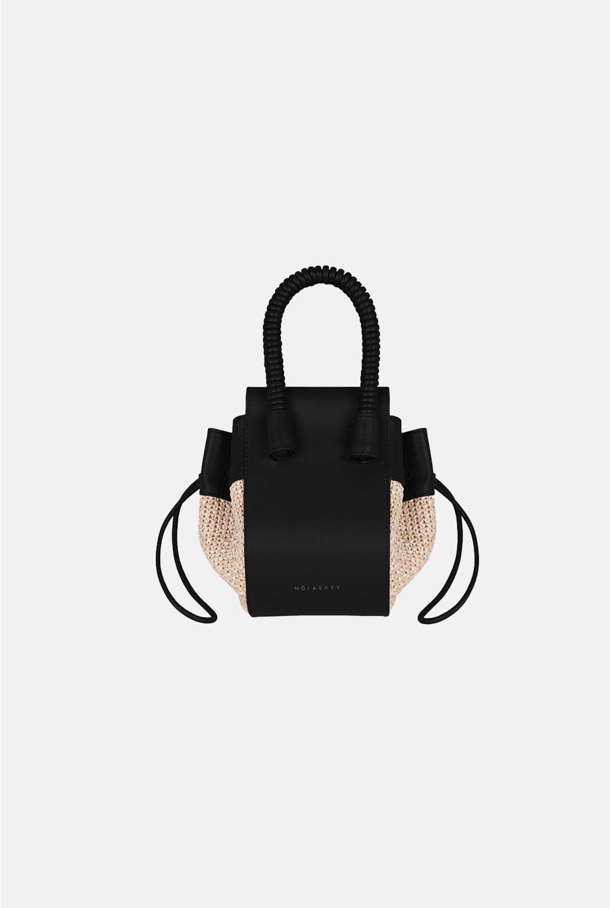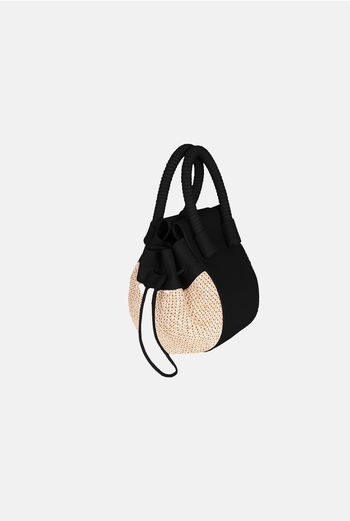 Una versión veraniega de nuestro emblemático Bubble Bag confeccionado en piel de becerro y rafia natural en los laterales. Este bolso compacto, que ofrece múltiples usos, se puede llevar como bolso de hombro, bandolera o con asa superior.