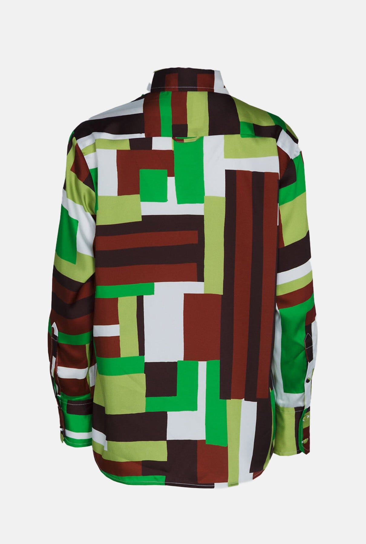 Transporta tu estilo a décadas pasadas con nuestra encantadora camisa en tonos verde, marrones y blancos. Con un diseño retro, esta prenda fusiona colores tierra con un toque de frescura, creando un look distintivo y lleno de encanto. Perfecta para añadir un toque vintage a tu guardarropa con elegancia y sofisticación.