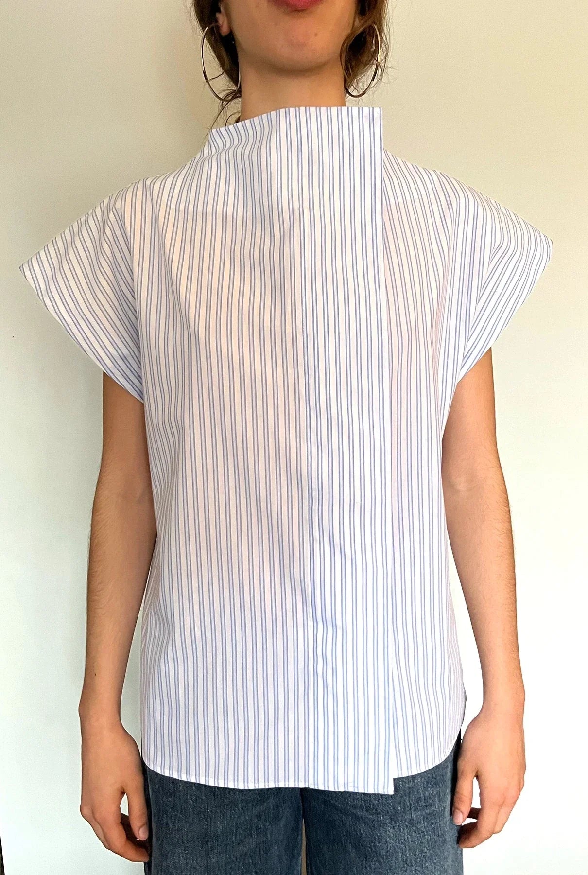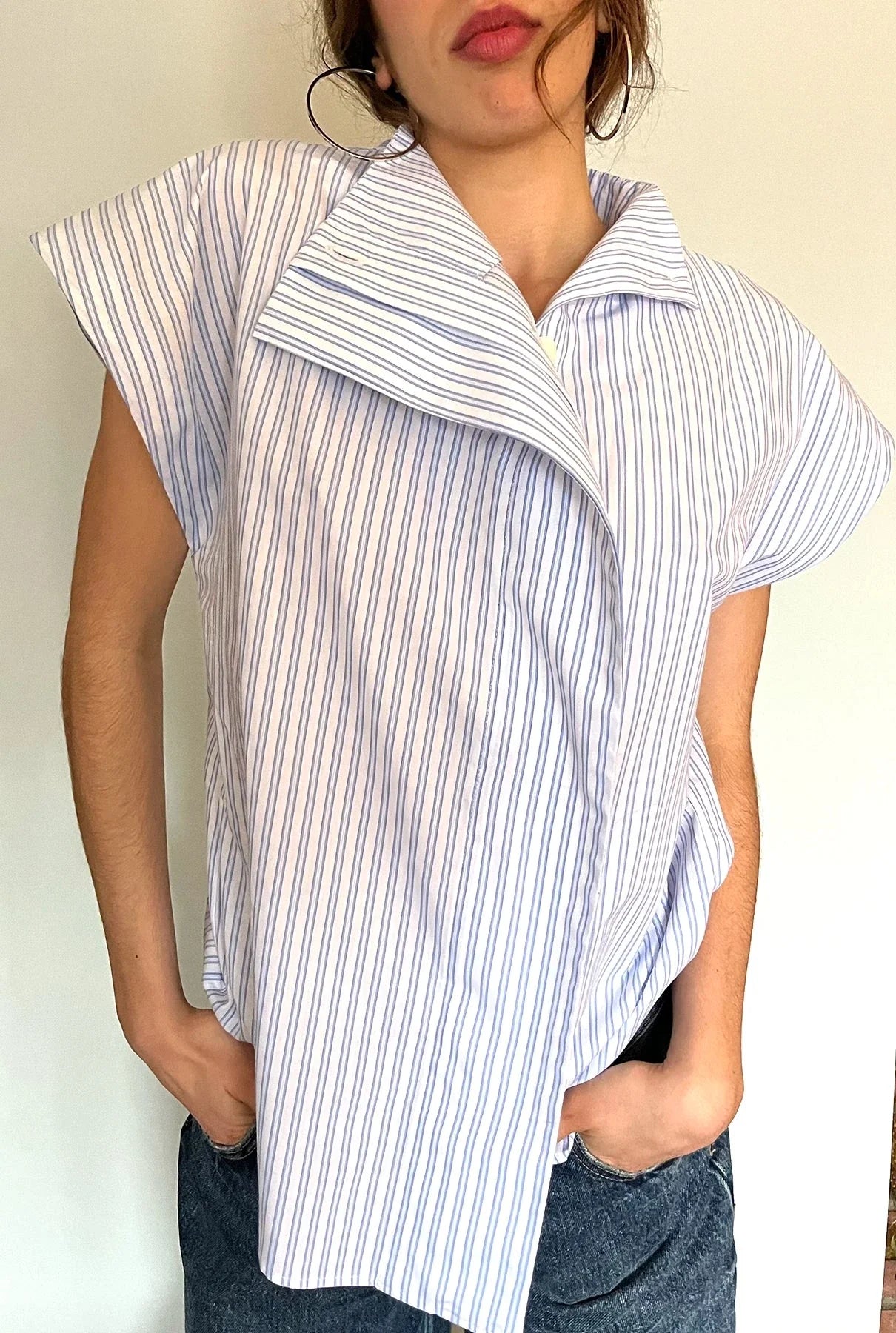 CAMISA LATERAL MANGA CORTA RAYAS AZULES