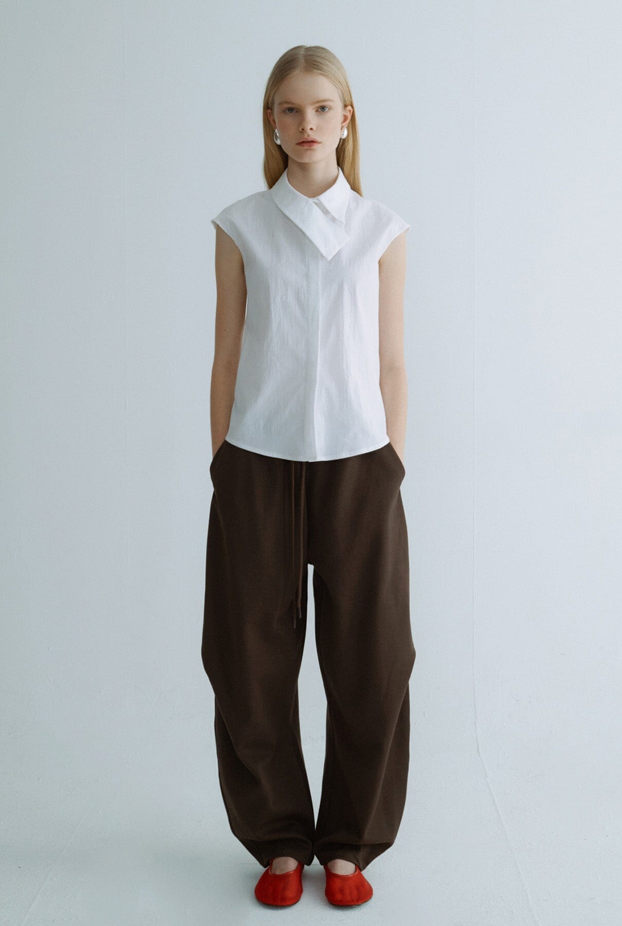 Camisa Miguel Marinero en algodón blanco. Cuello asimétrico que aporta un look sofisticado y característico de la firma. Completa tu guardarropa con esta camisa básica de guardarropa, una opción versátil para reuniones elegantes o un look más informal y entallado.