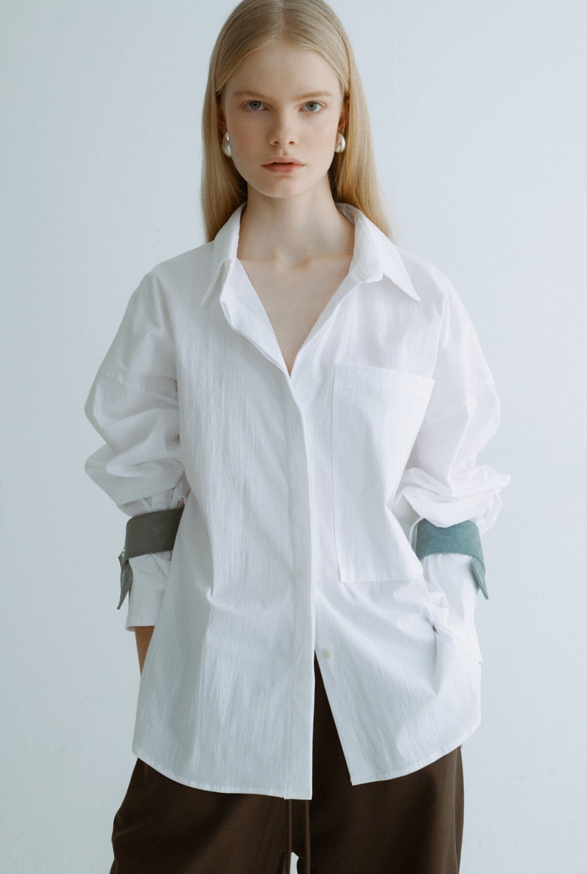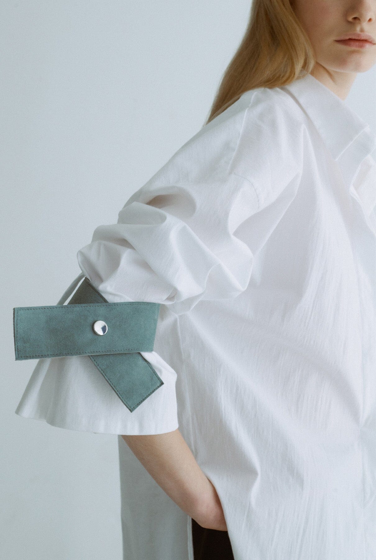 Camisa Miguel Marinero de algodón blanco con detalle de ante en puños. El ante en las mangas lo hace especial y único, aportando un look sofisticado y característico de la firma. Completa tu guardarropa con esta camisa básica de guardarropa, una opción versátil para reuniones elegantes o un look más casual, de estilo oversize.