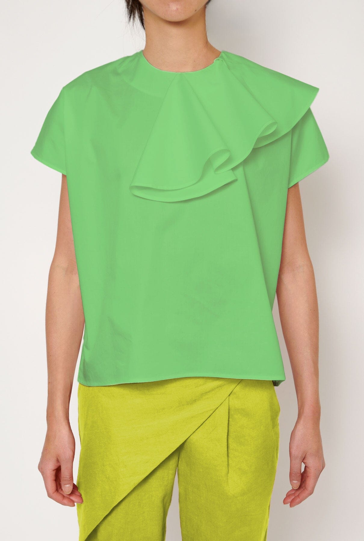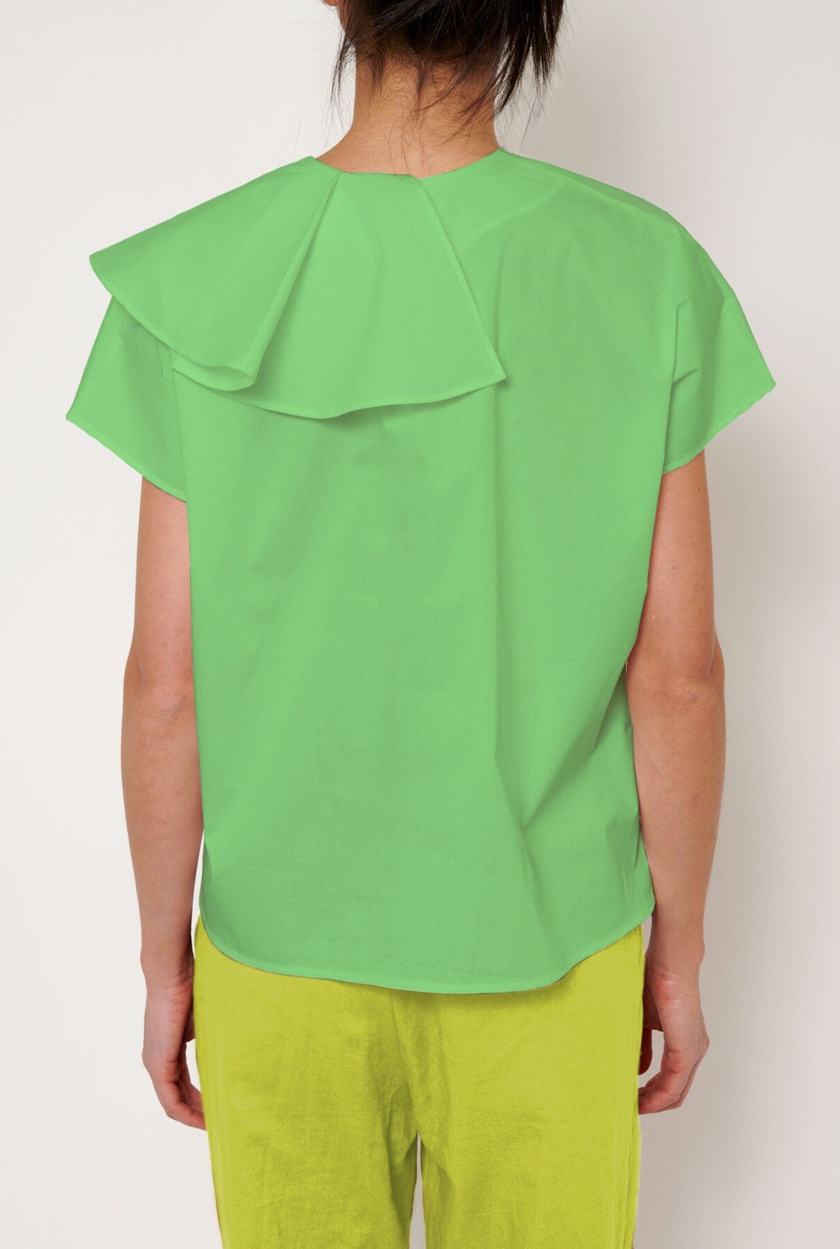 Camisa de popelina de algodón de manga corta con volante en el cuello.