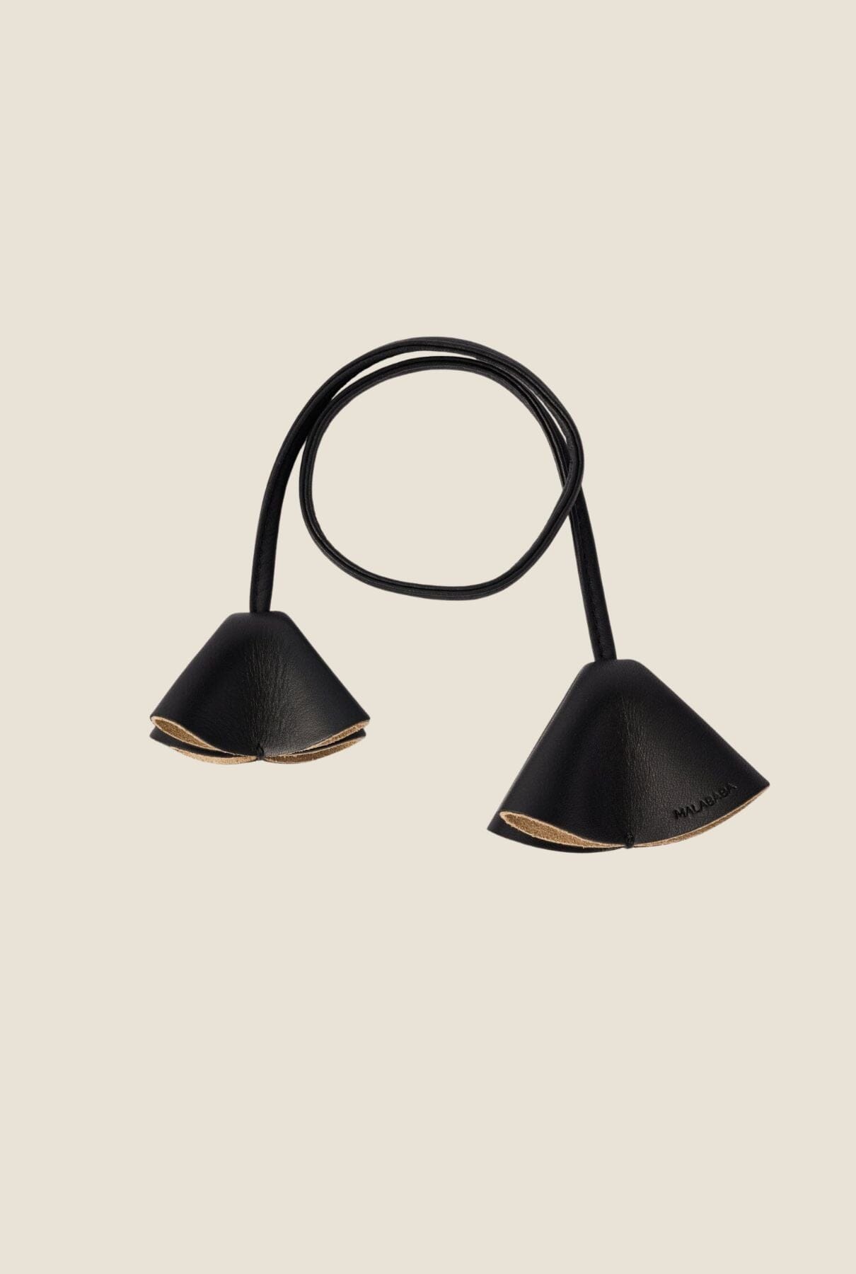 Gargantilla con grandes flores y cordón en piel de vacuno, hecha a mano.