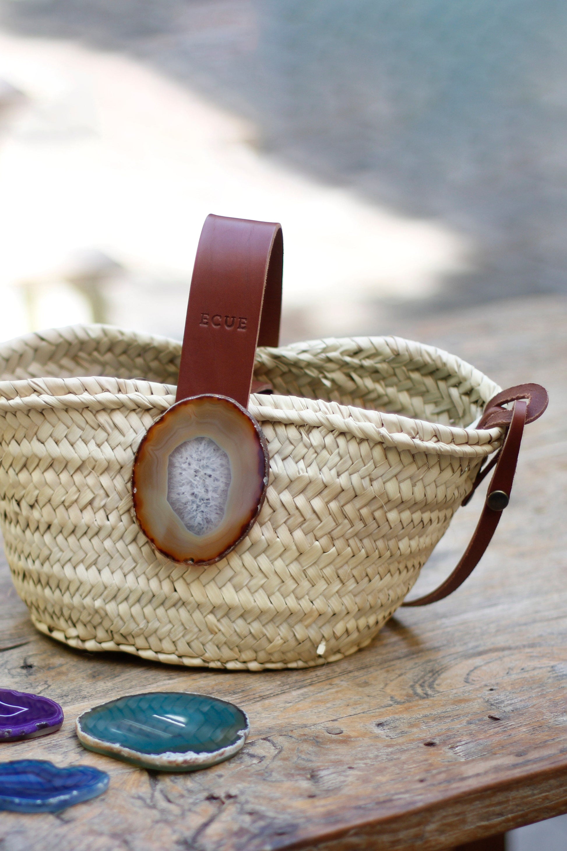 Nuestro capazo Zoé en tamaño pequeño es el bolso perfecto para este verano. El asa de piel color camel, combinada con el aplique de ágata intercambiable, le da un toque original, alegre y muy especial a cualquier look. Serás el centro de atención con este accesorio único, funcional y diferente.
