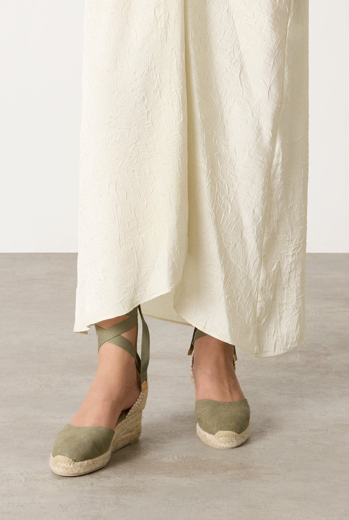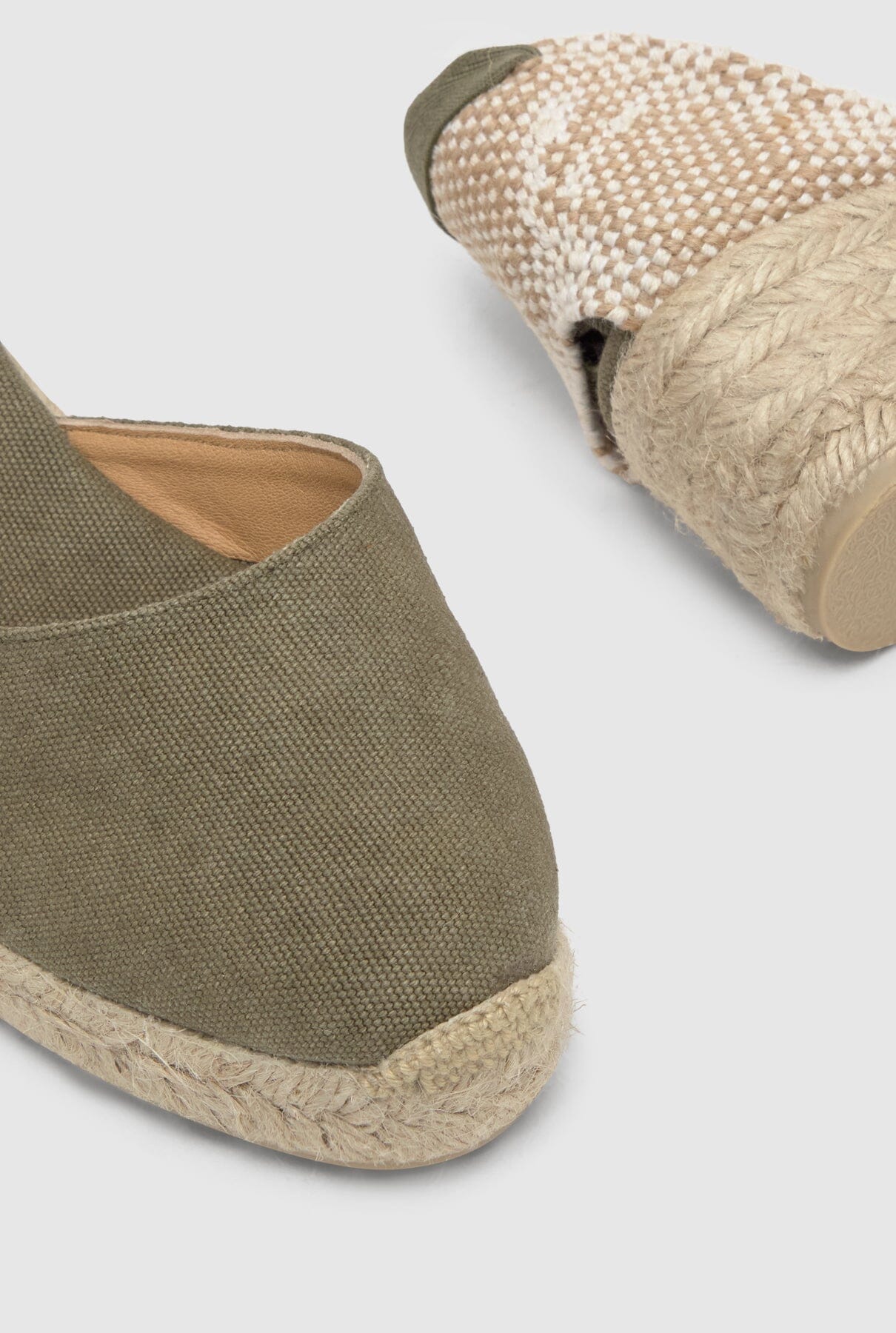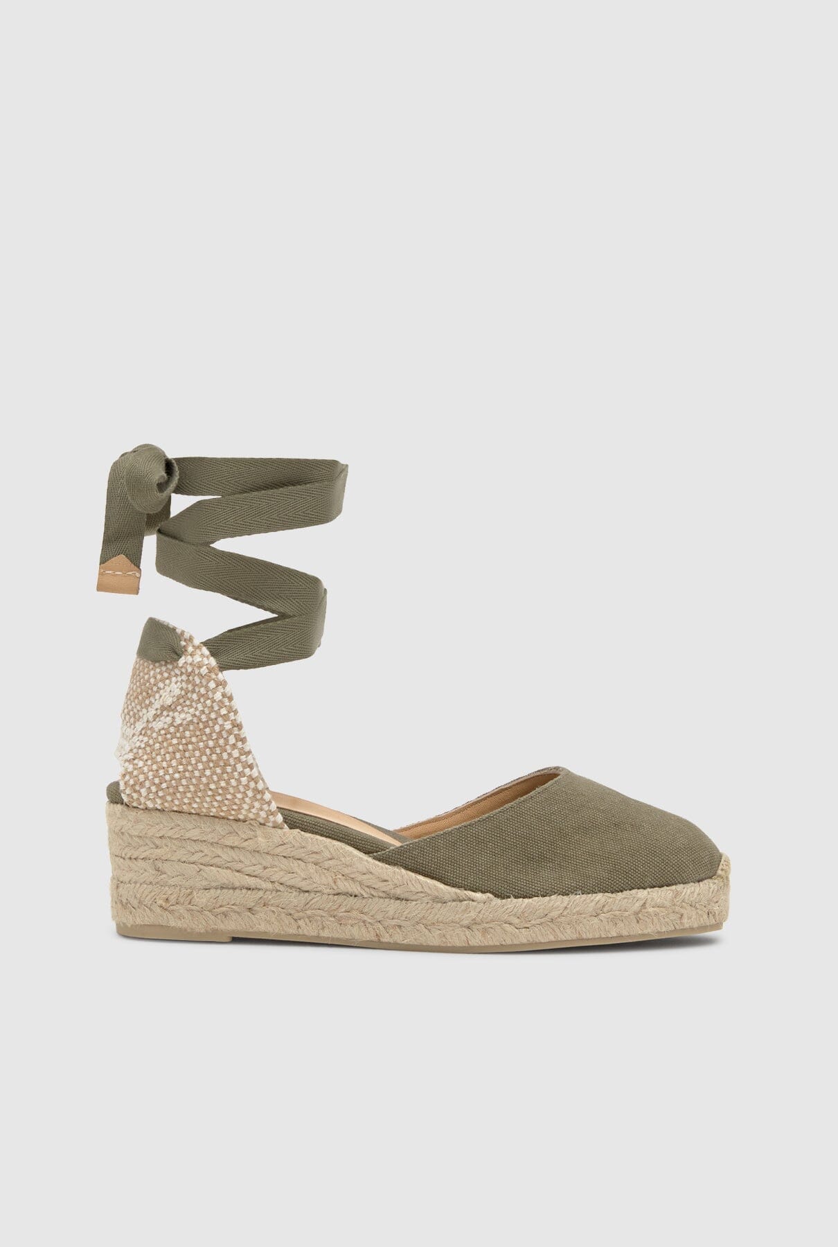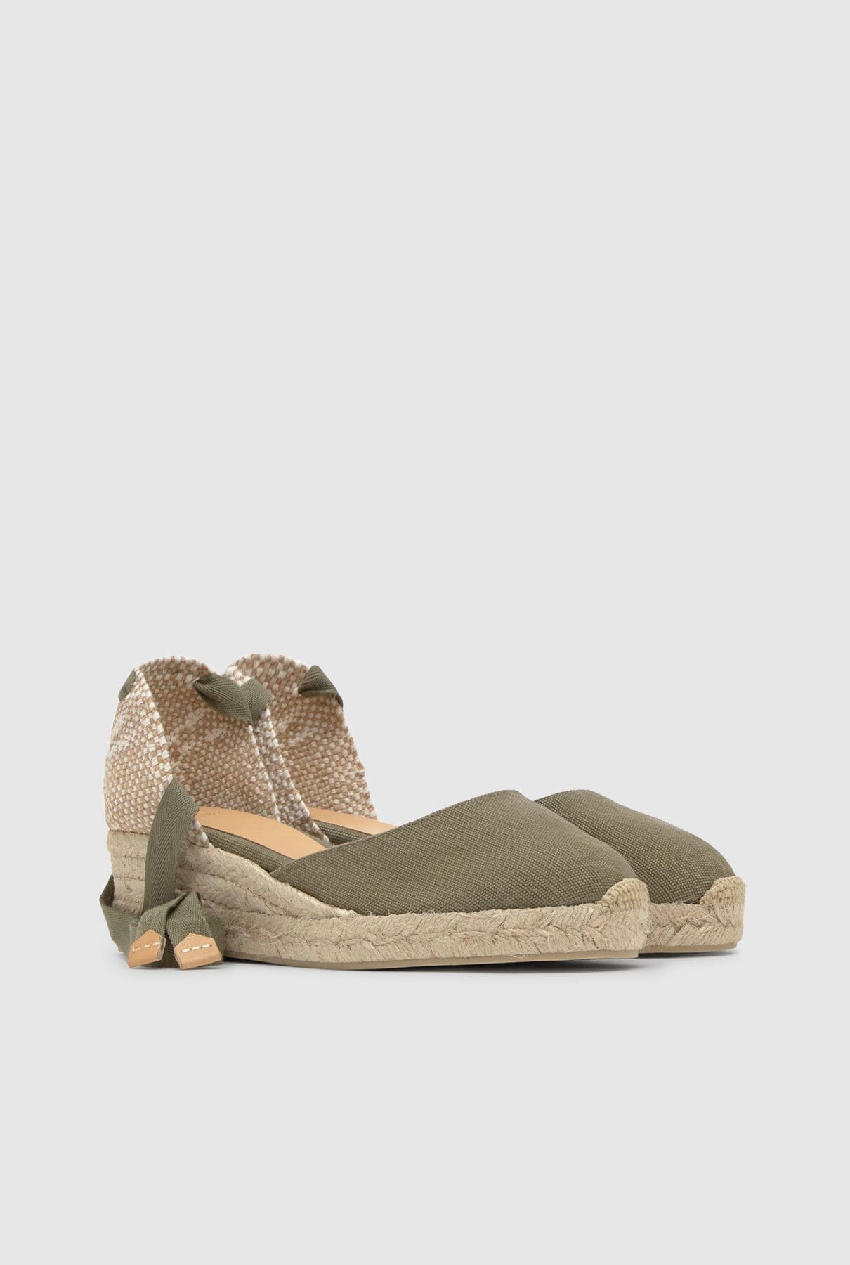 Alpargata Carina de algodón orgánico lavado con cierre de cordones, plantilla acolchada y tacón de yute de 5 cm. Tallaje real