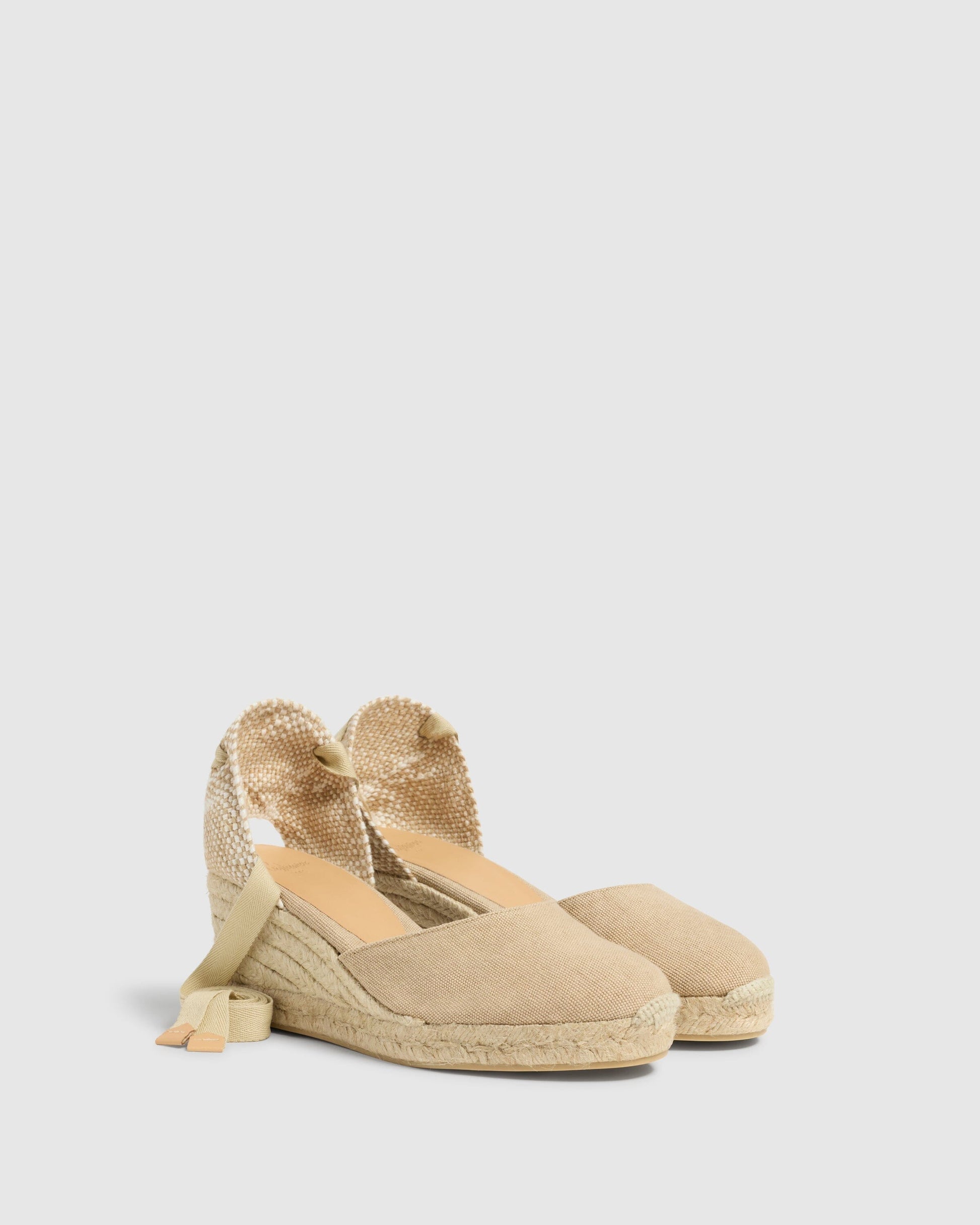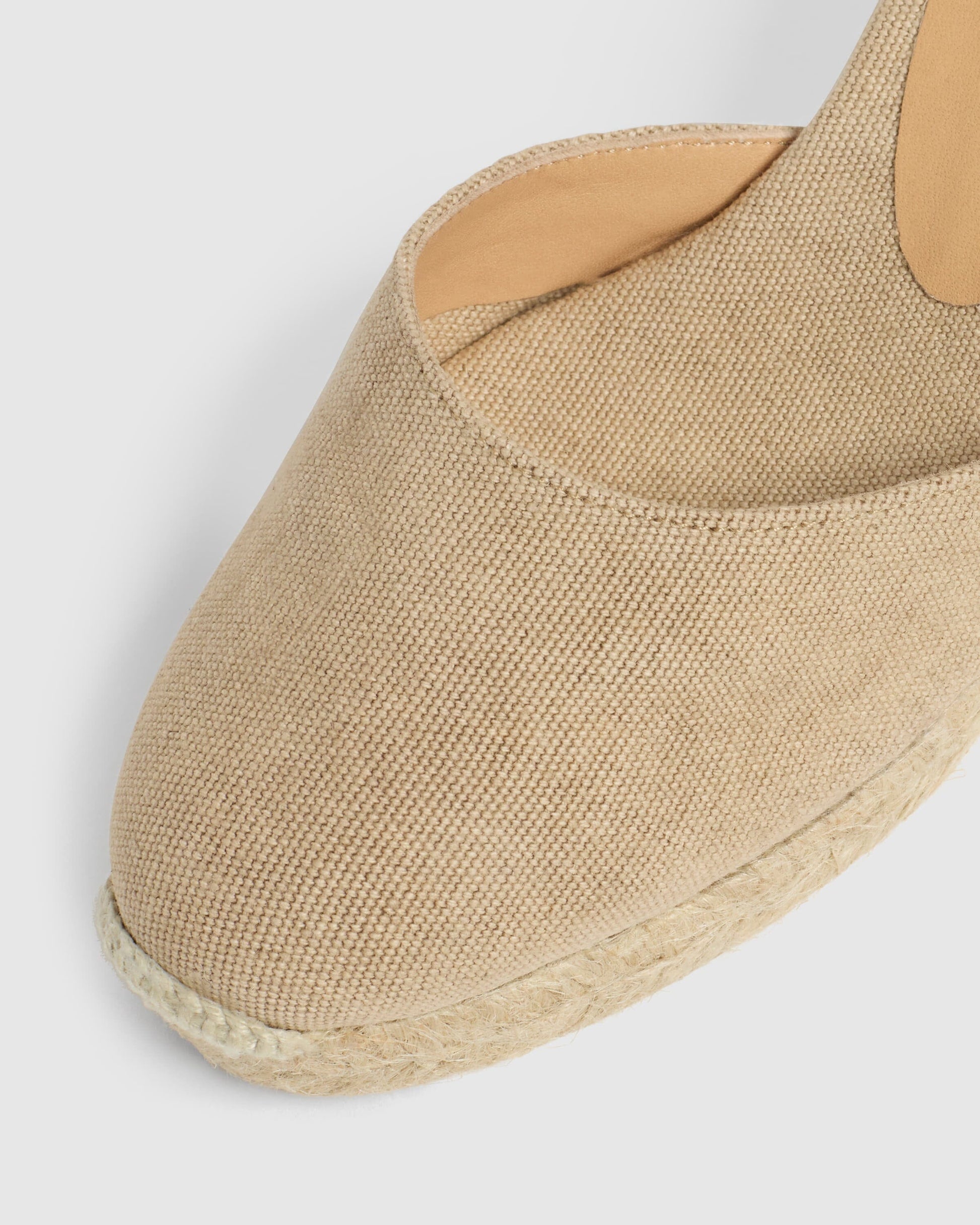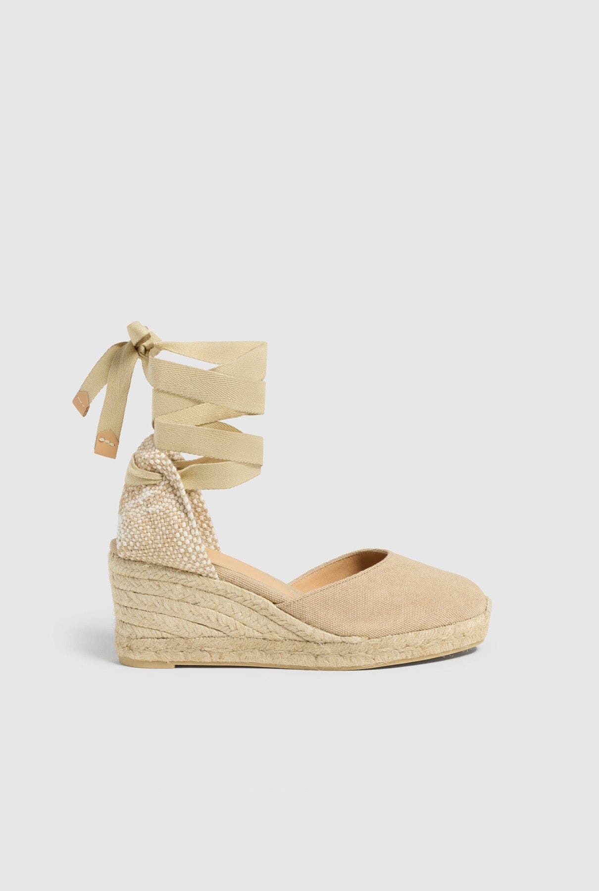 Carina, nuestras icónicas alpargatas, vuelven como cada temporada para convertirse en un básico atemporal de cualquier armario. Confeccionadas en España con algodón orgánico certificado con un acabado lavado sostenible, las alpargatas Carina presentan una puntera cerrada y redondeada, cierre de cordones, cuña de 7 cm y suela de goma vulcanizada.