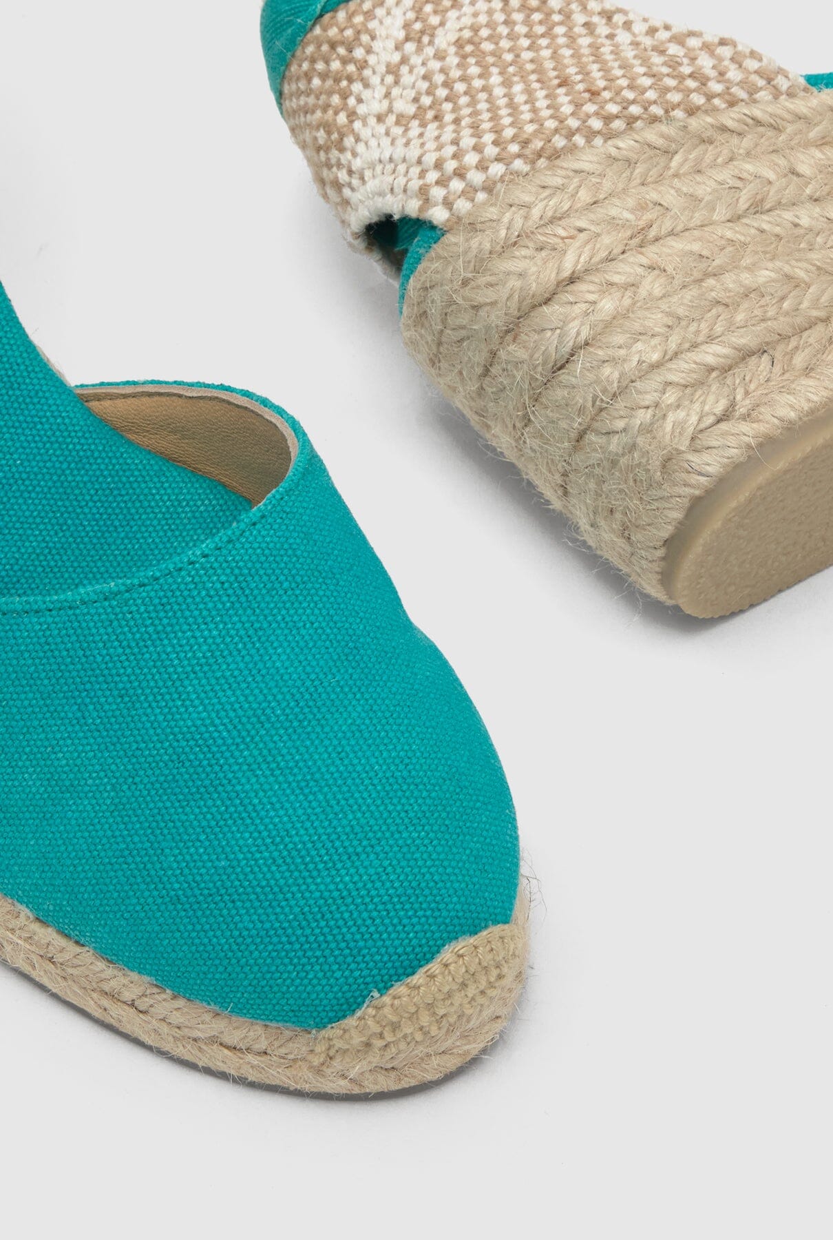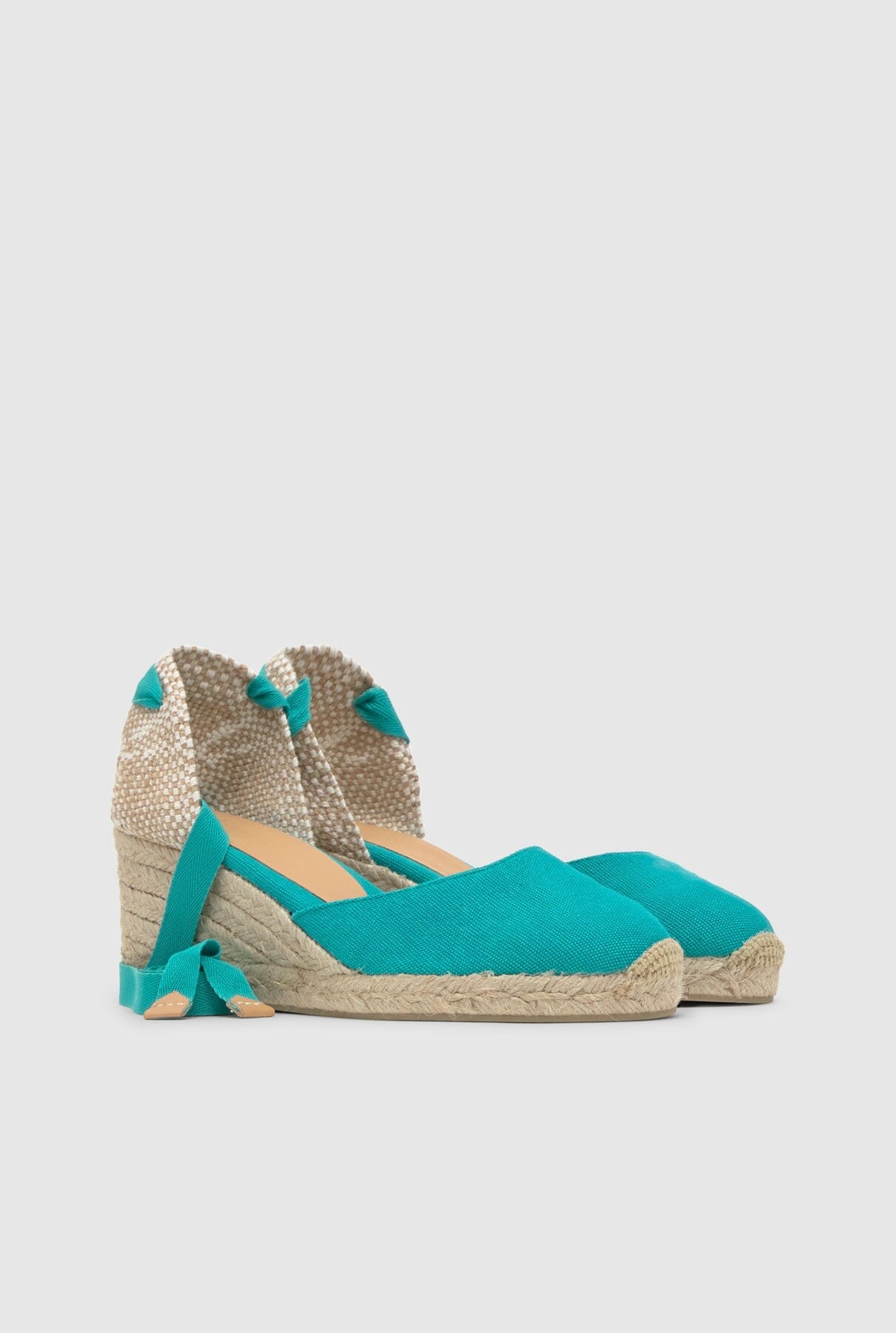 Carina, nuestras icónicas alpargatas, vuelven como cada temporada para convertirse en un básico atemporal de cualquier armario. Confeccionadas en España con algodón orgánico certificado con un acabado lavado sostenible, las alpargatas Carina presentan una puntera cerrada y redondeada, cierre de cordones, cuña de 7 cm y suela de goma vulcanizada.
