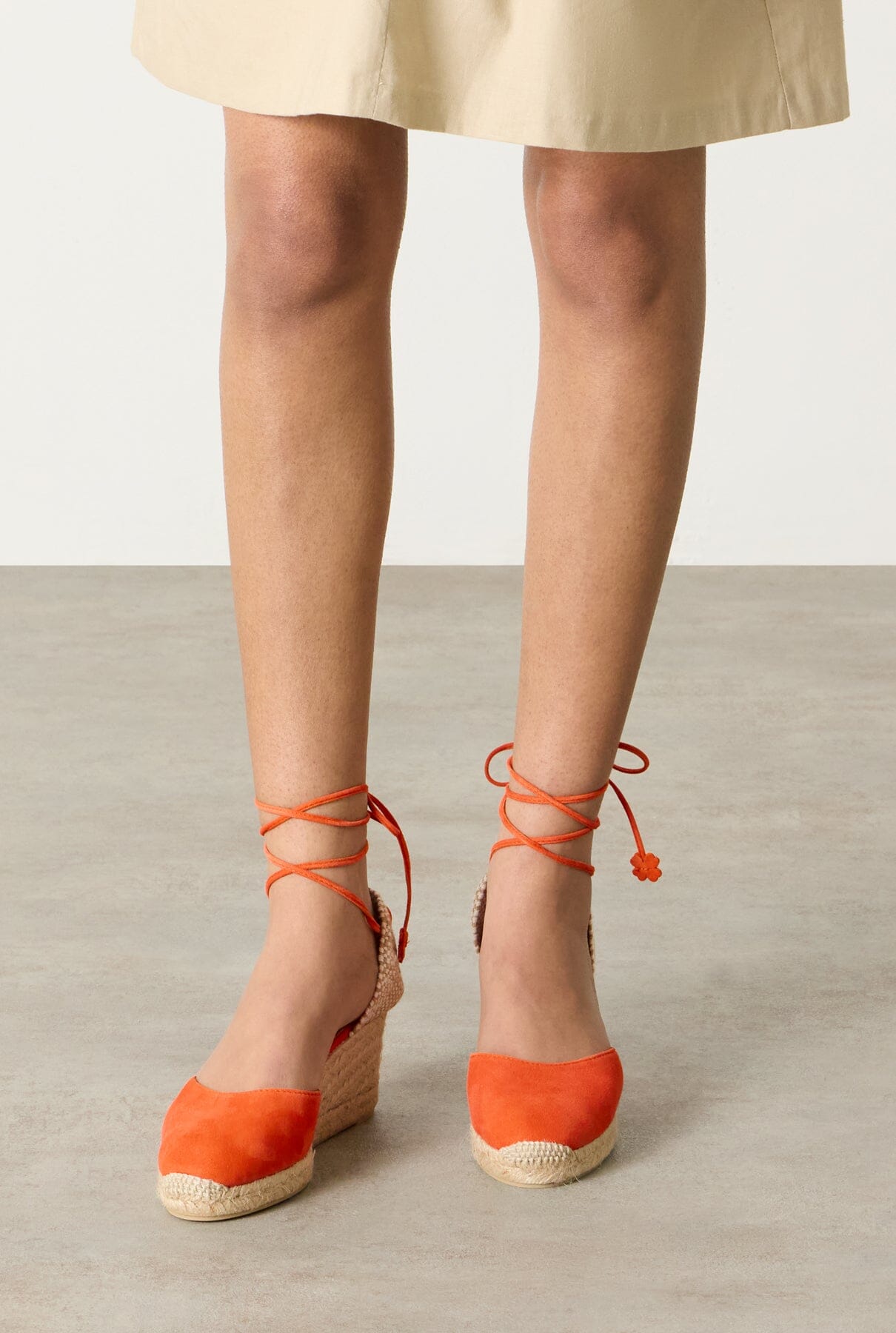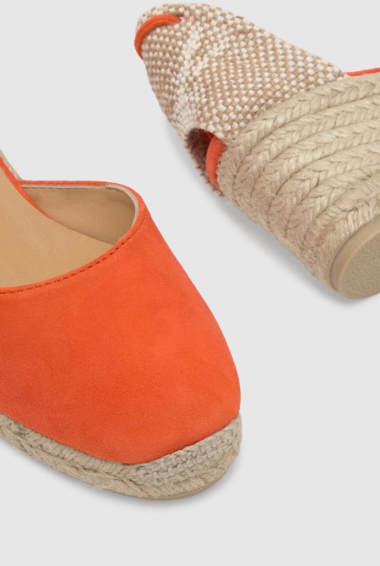 Carina, nuestras icónicas alpargatas, vuelven como cada temporada para convertirse en un imprescindible atemporal en tu armario. Fabricadas en España en ante, las alpargatas Carina cuentan con puntera cerrada redondeada, cierre de cordones, tacón de 7 cm y suela de goma vulcanizada.