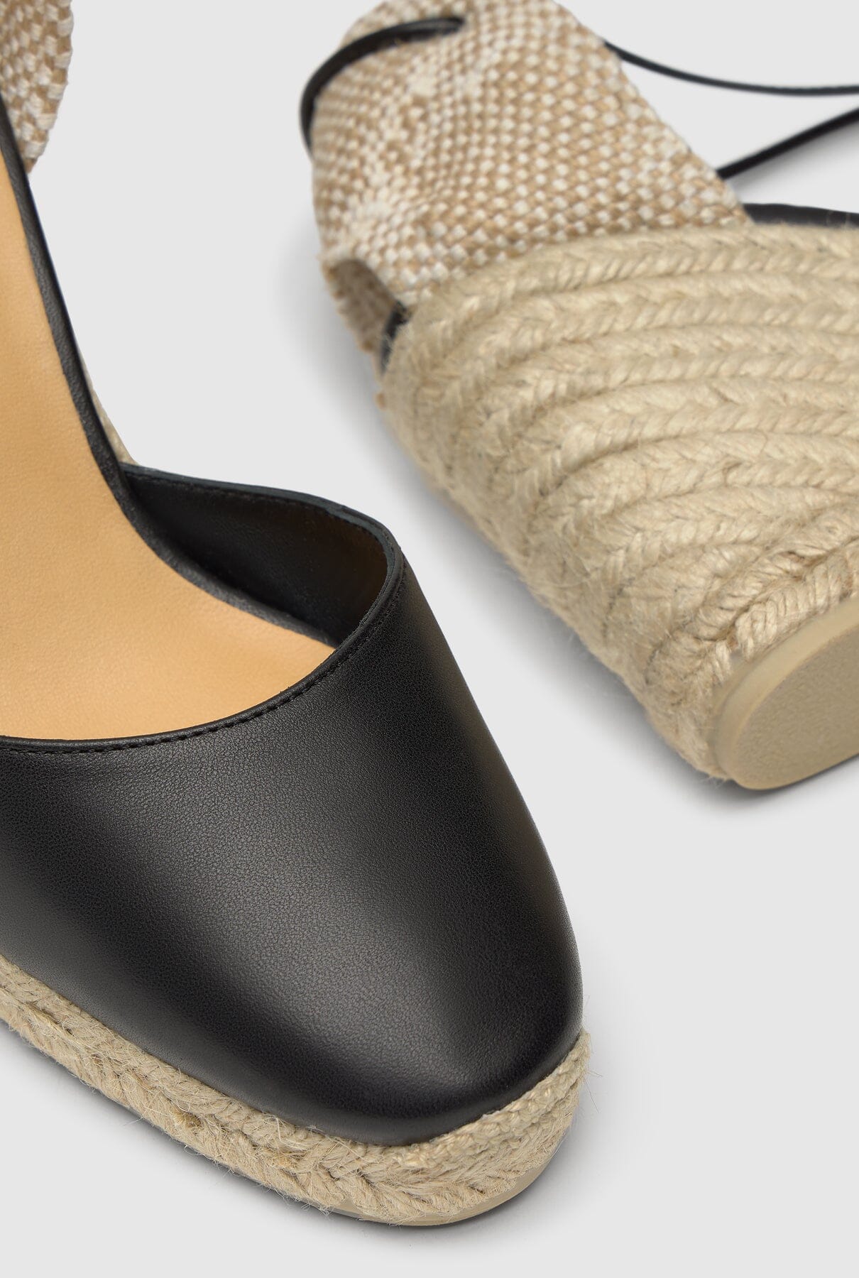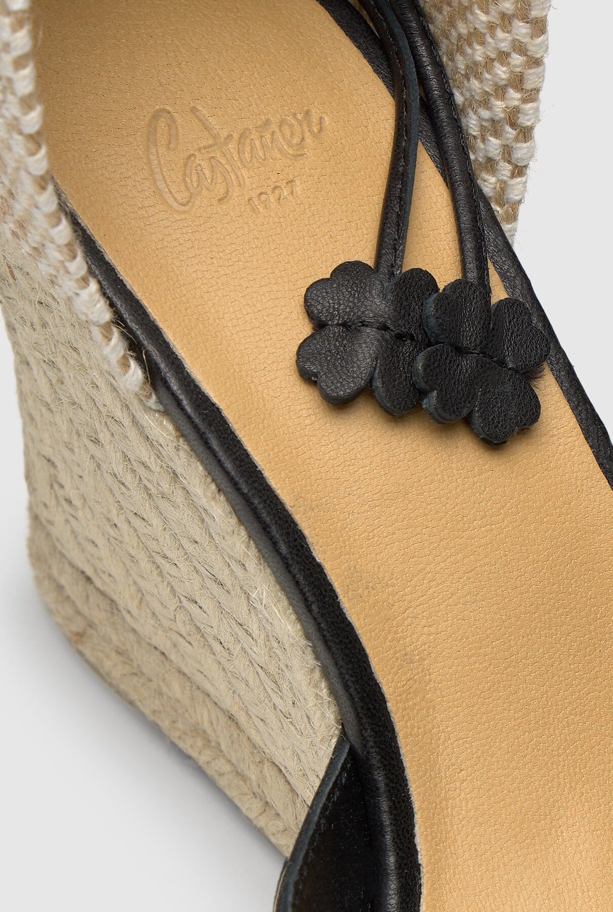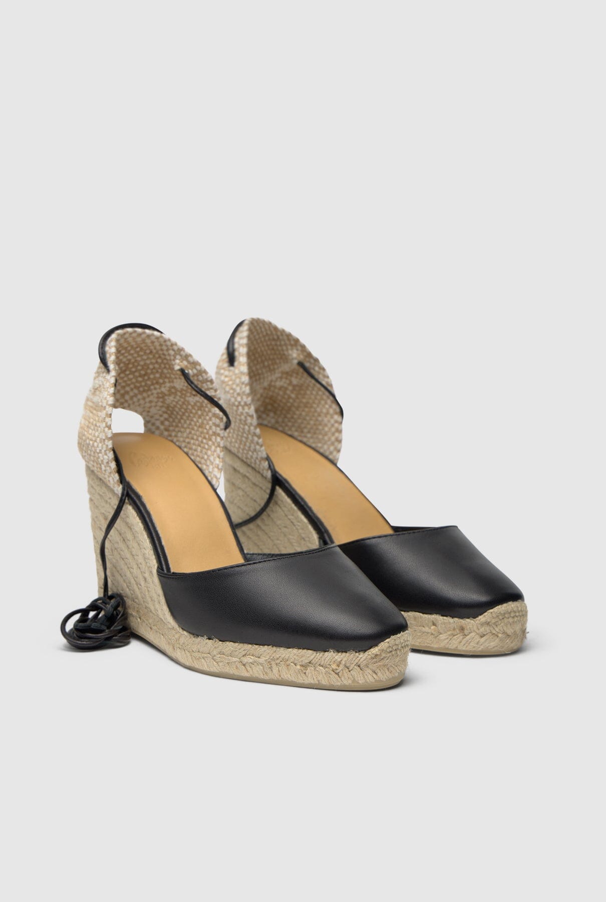 Alpargata Carina en piel napa con cierre de cordones de piel, plantilla acolchada y tacón de yute de 9 cm.