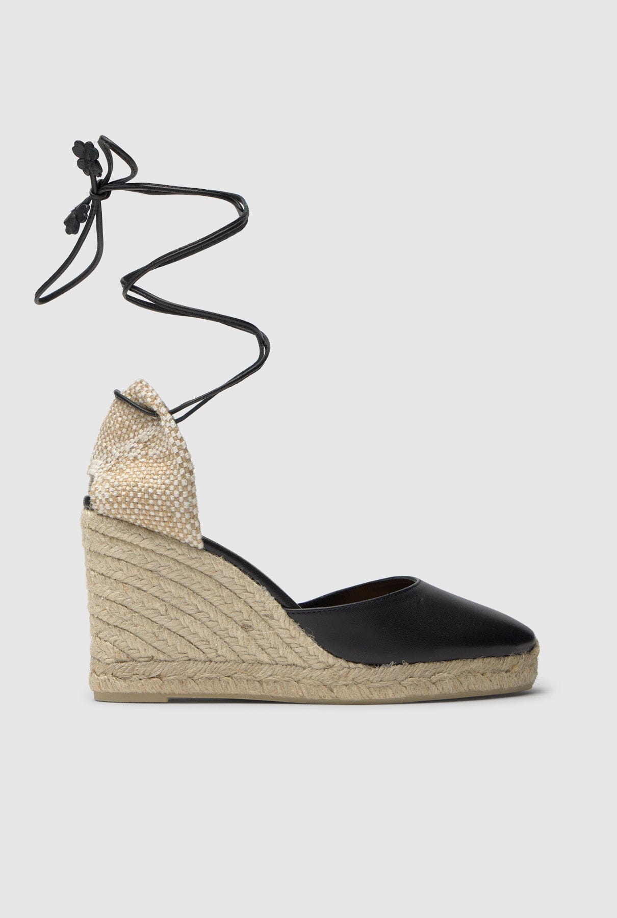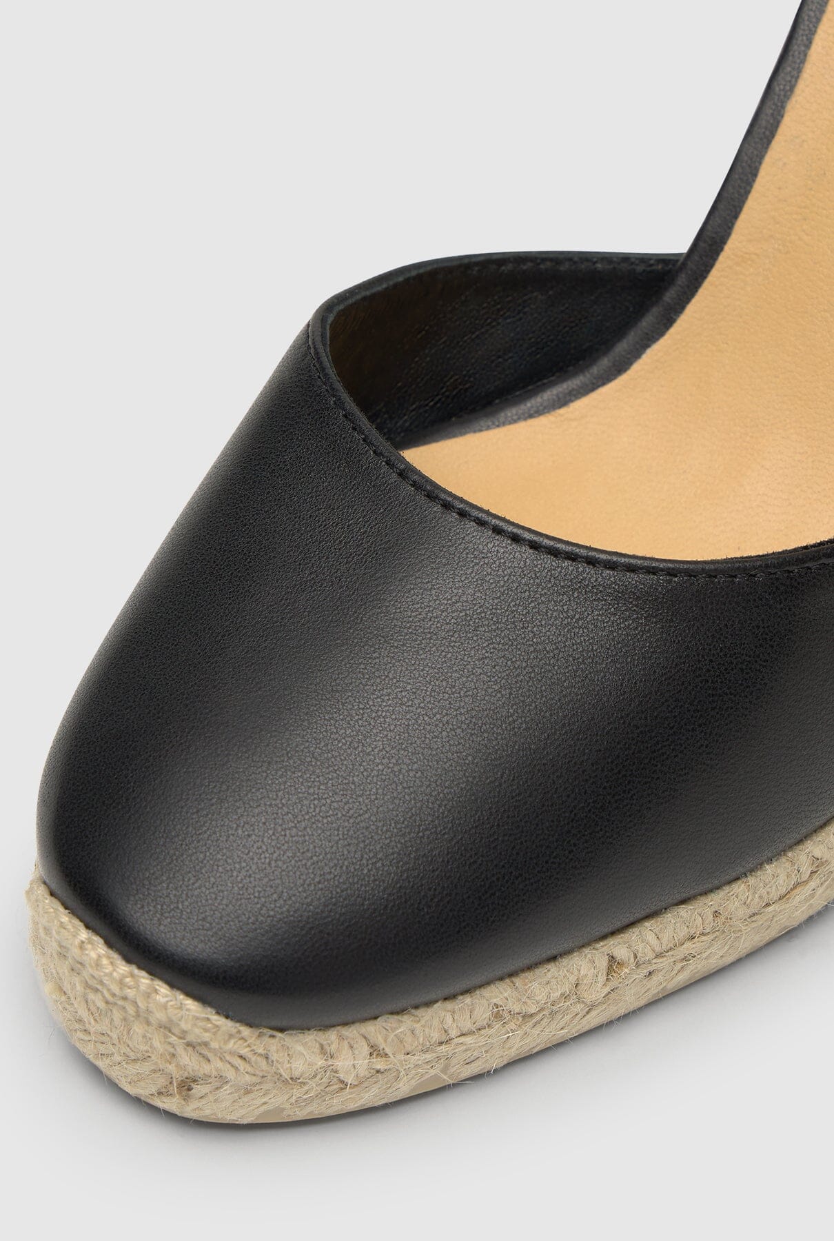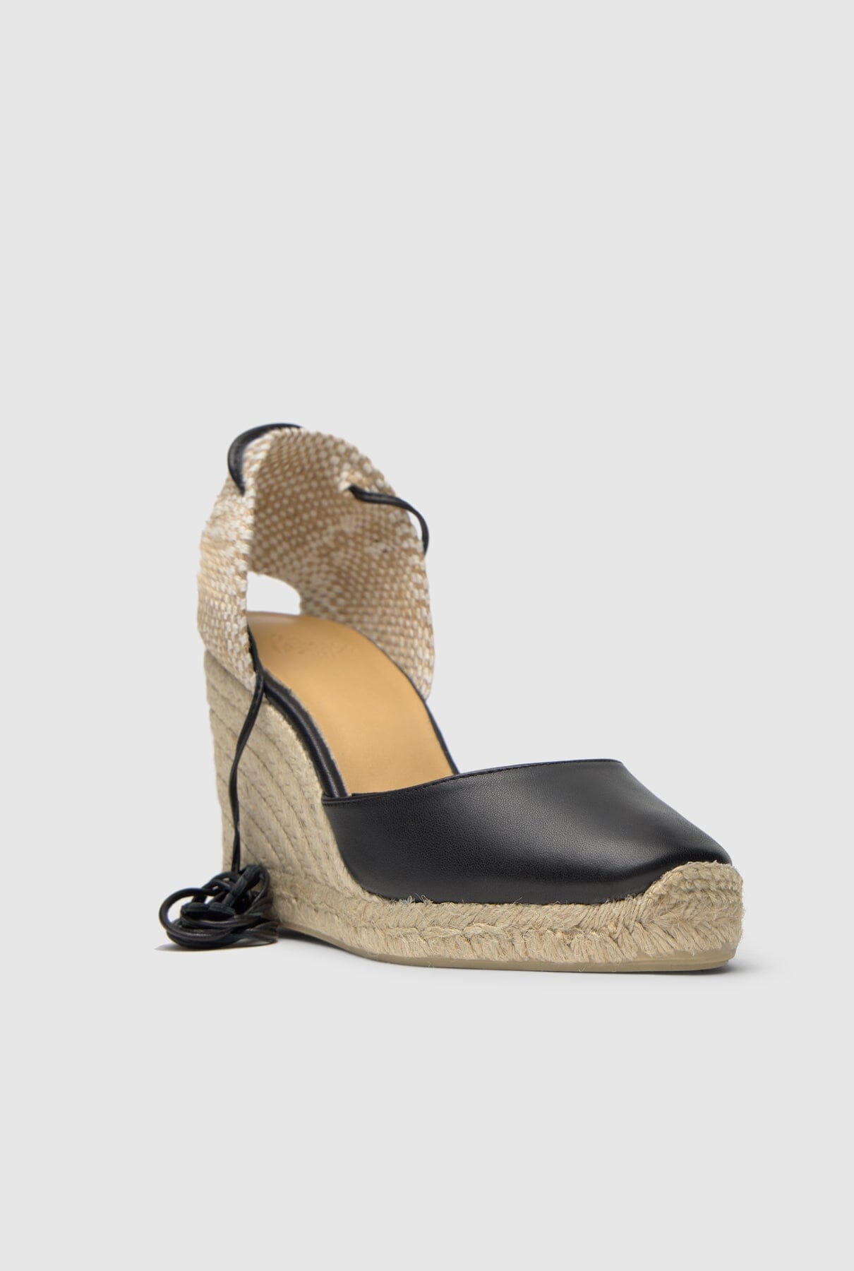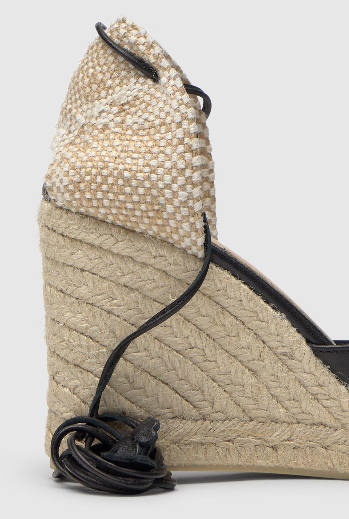 Alpargata Carina en piel napa con cierre de cordones de piel, plantilla acolchada y tacón de yute de 9 cm.