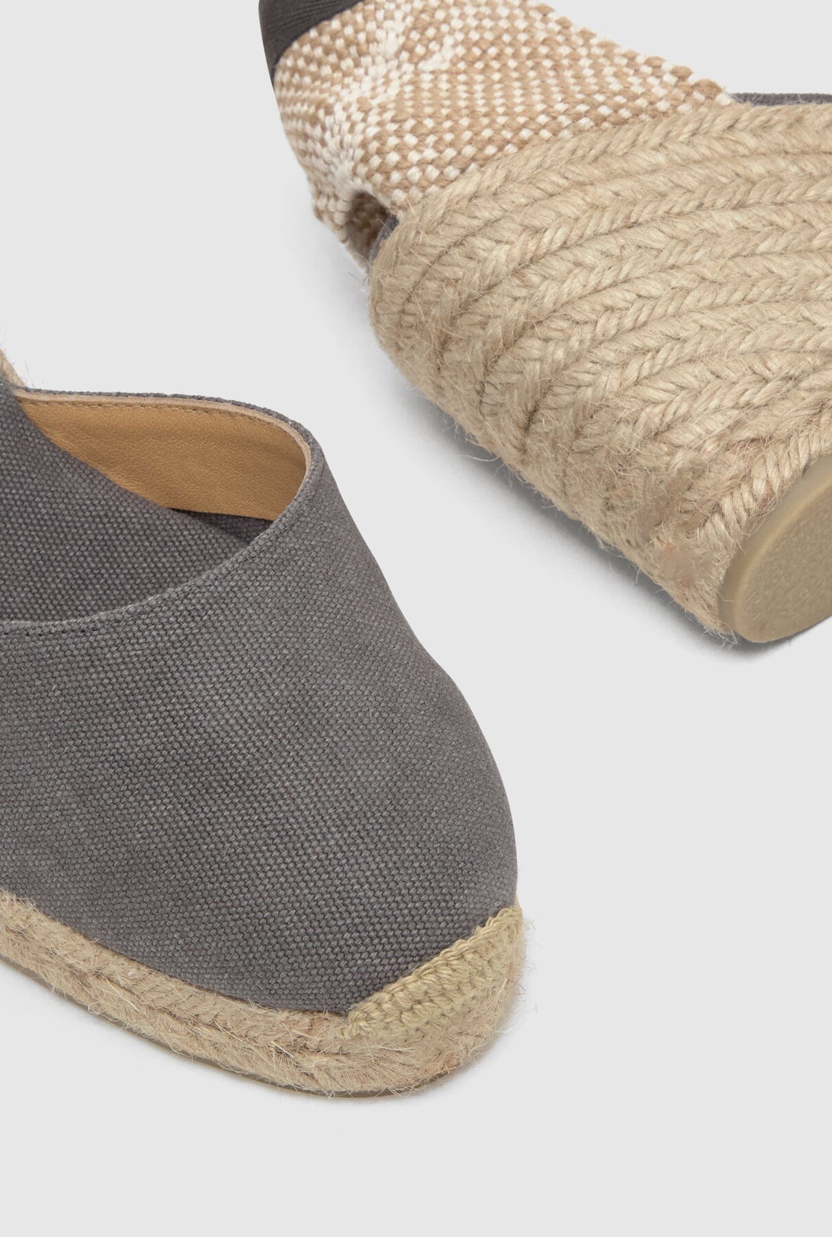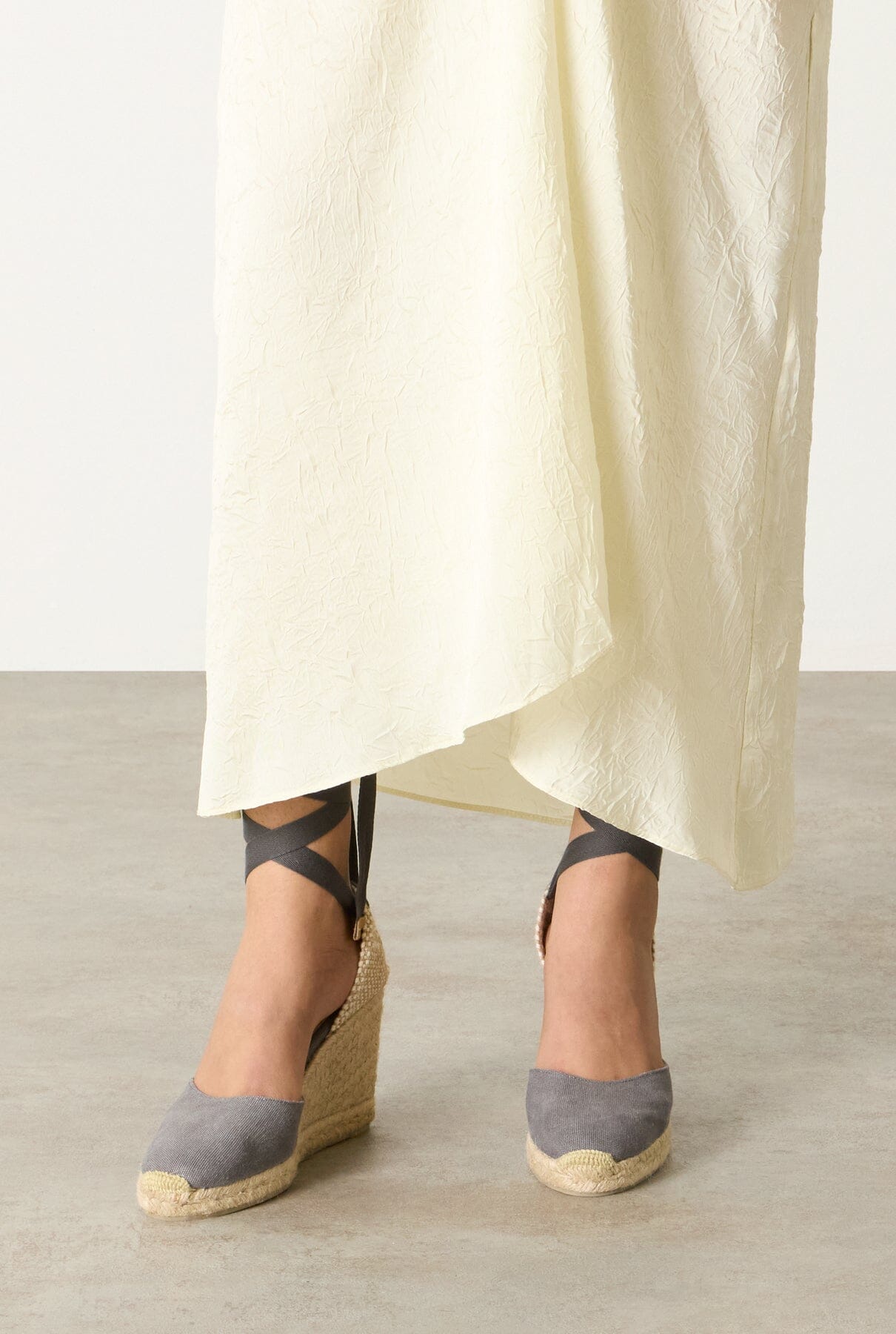 Carina, nuestras icónicas alpargatas vuelven como cada temporada para convertirse en un imprescindible atemporal en tu armario. Fabricadas en España en algodón orgánico certificado y acabado lavado sostenible. Las alpargatas Carina cuentan con puntera cerrada redondeada, cierre de cordones, tacón de 9 cm y suela de goma vulcanizada.