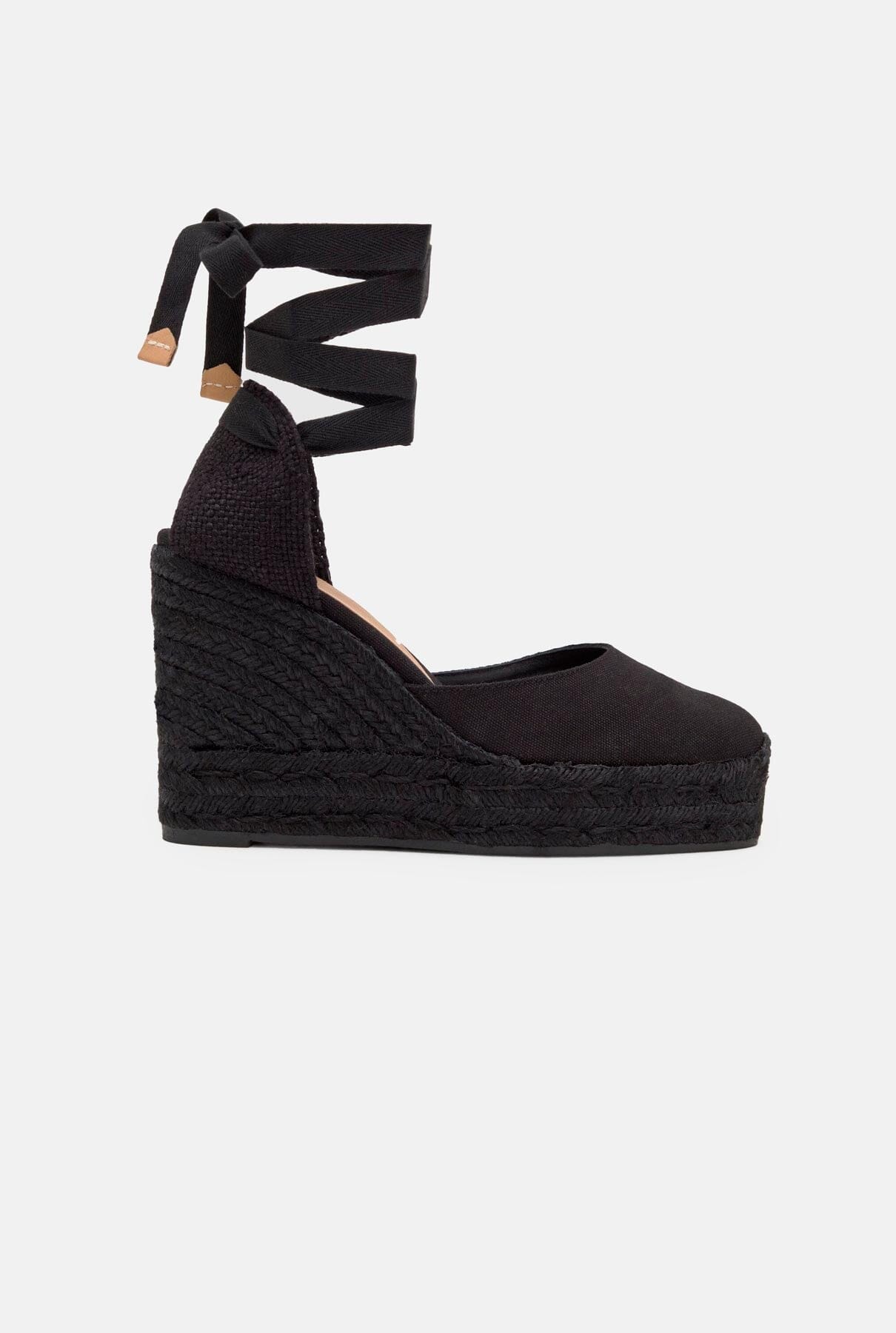 Alpargata icónica Carina de algodón orgánico con cierre de cordones y plantilla acolchada. Cuña de yute teñido de 11 cm con doble plataforma.