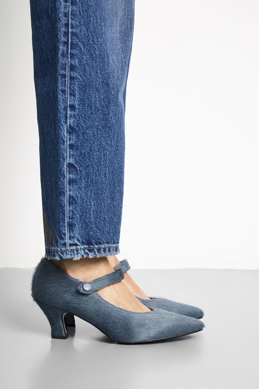 Carmen has a mix of tradition and trend. Inspired by flamenco shoes, this new Mary Jane reaches its coolest point with a luxurious grey calf hair.