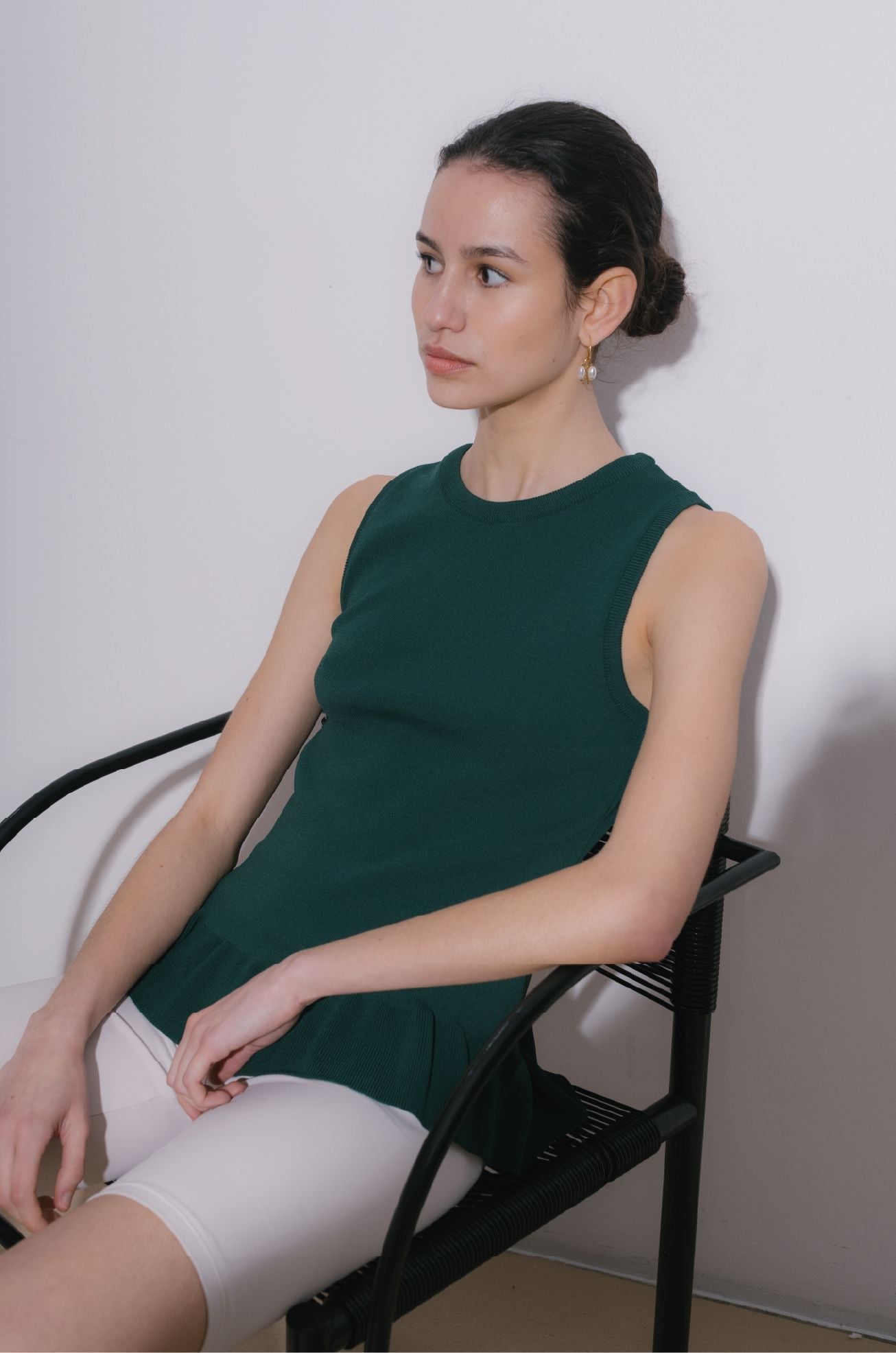 El top de punto Carmen tiene un escote ajustado y un volante vaporoso que aporta dimensión y movimiento.
