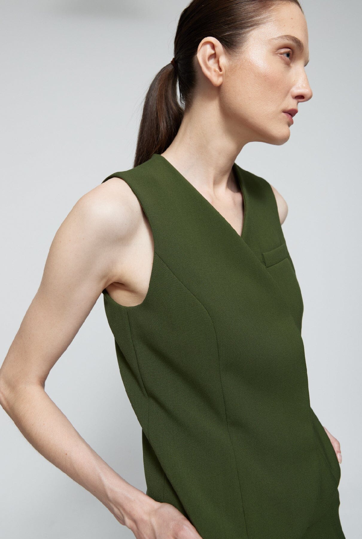 Bleis Madrid redefine los códigos de la sastrería con este chaleco cruzado con cierre invisible ajustado a la cintura. Una pieza que respira modernidad y lujo.
