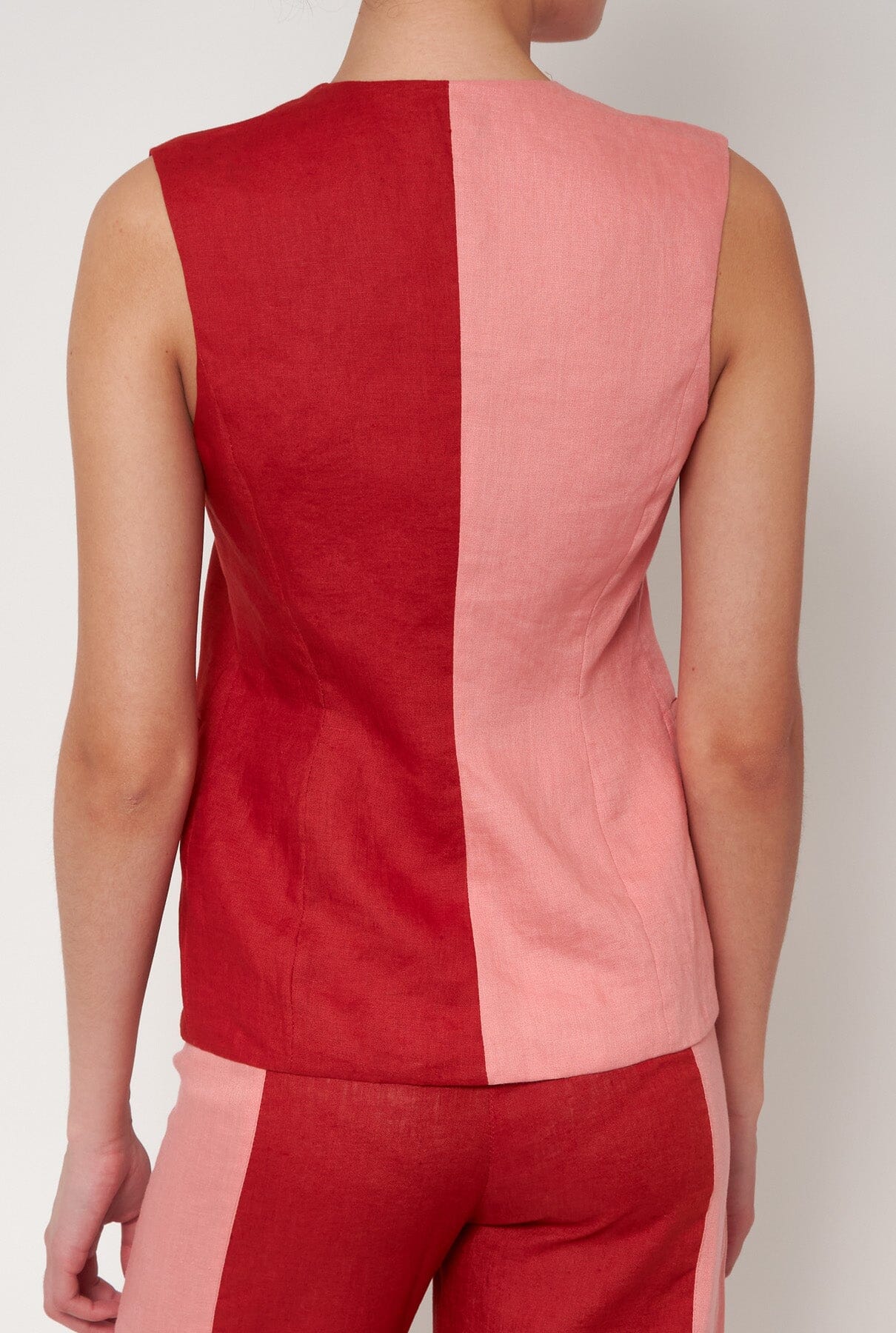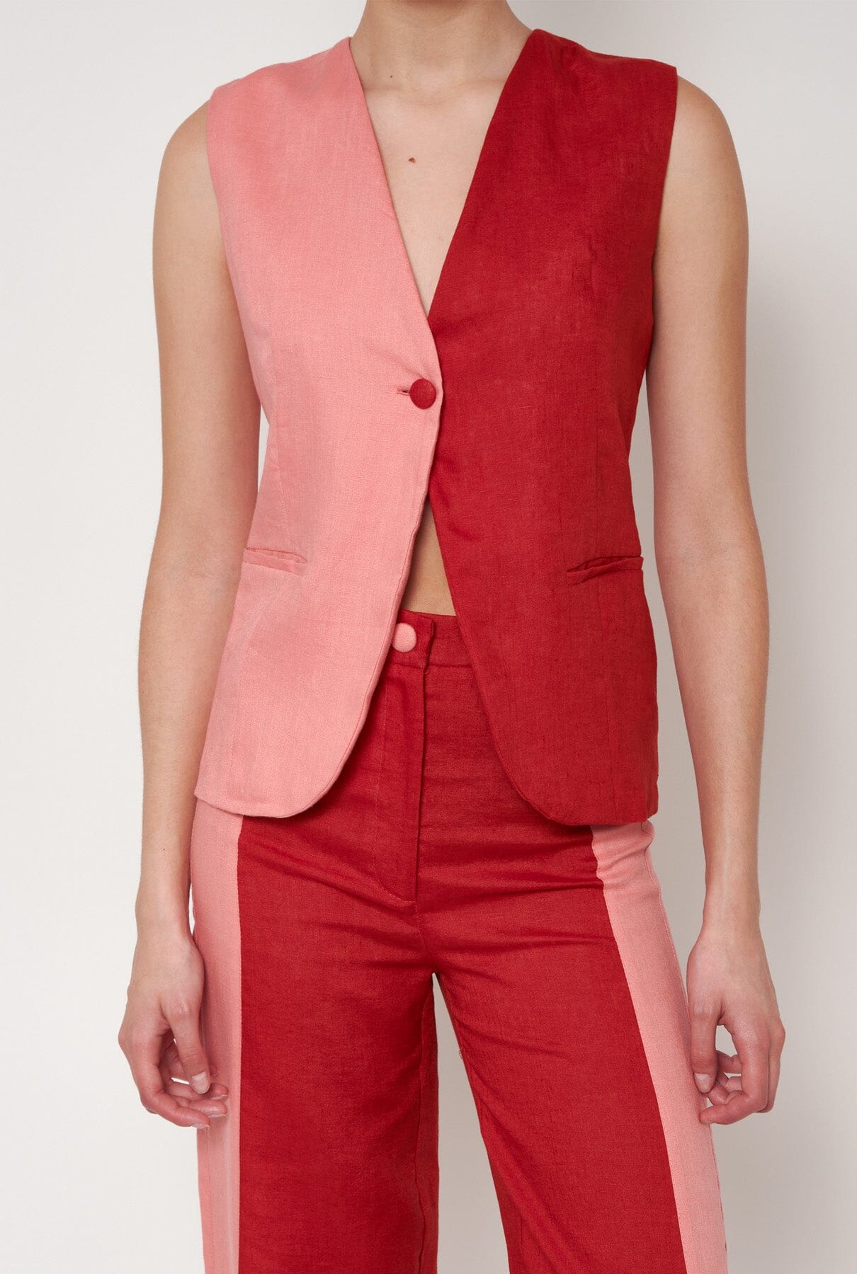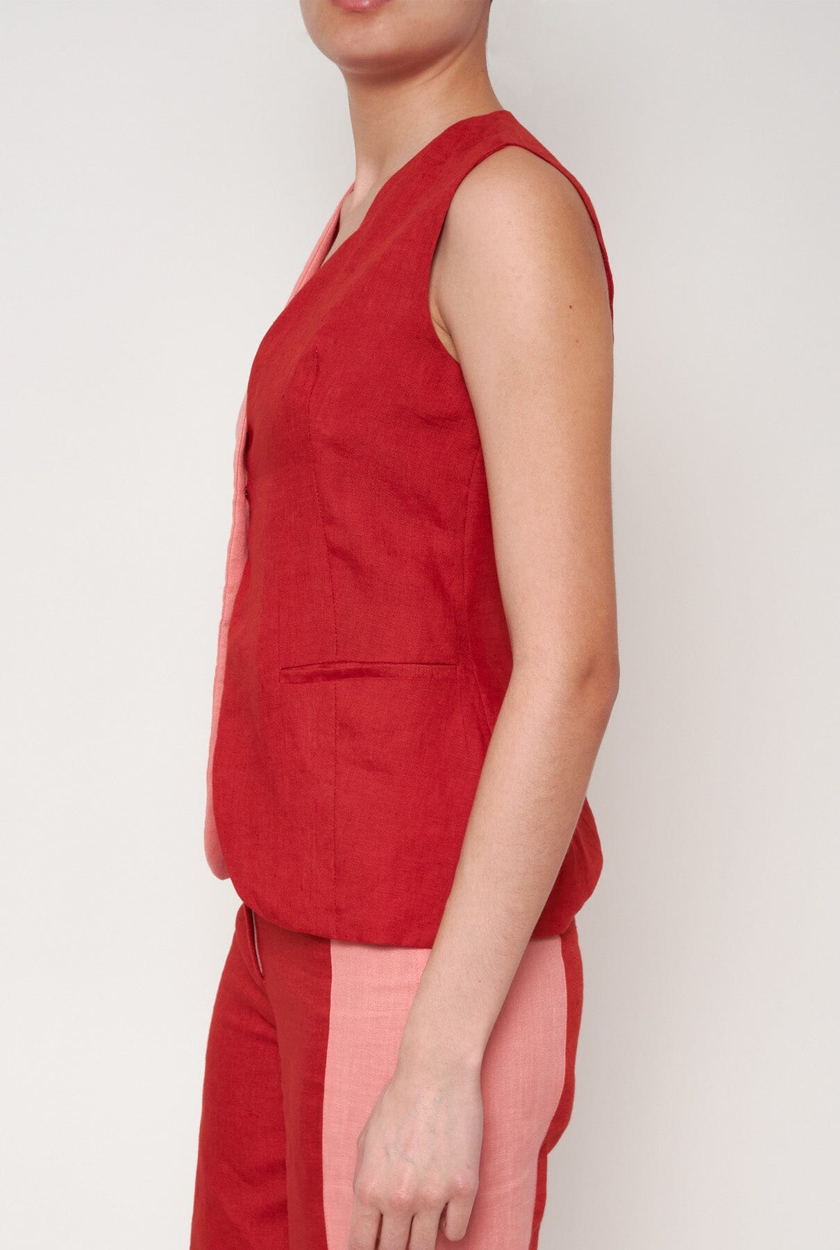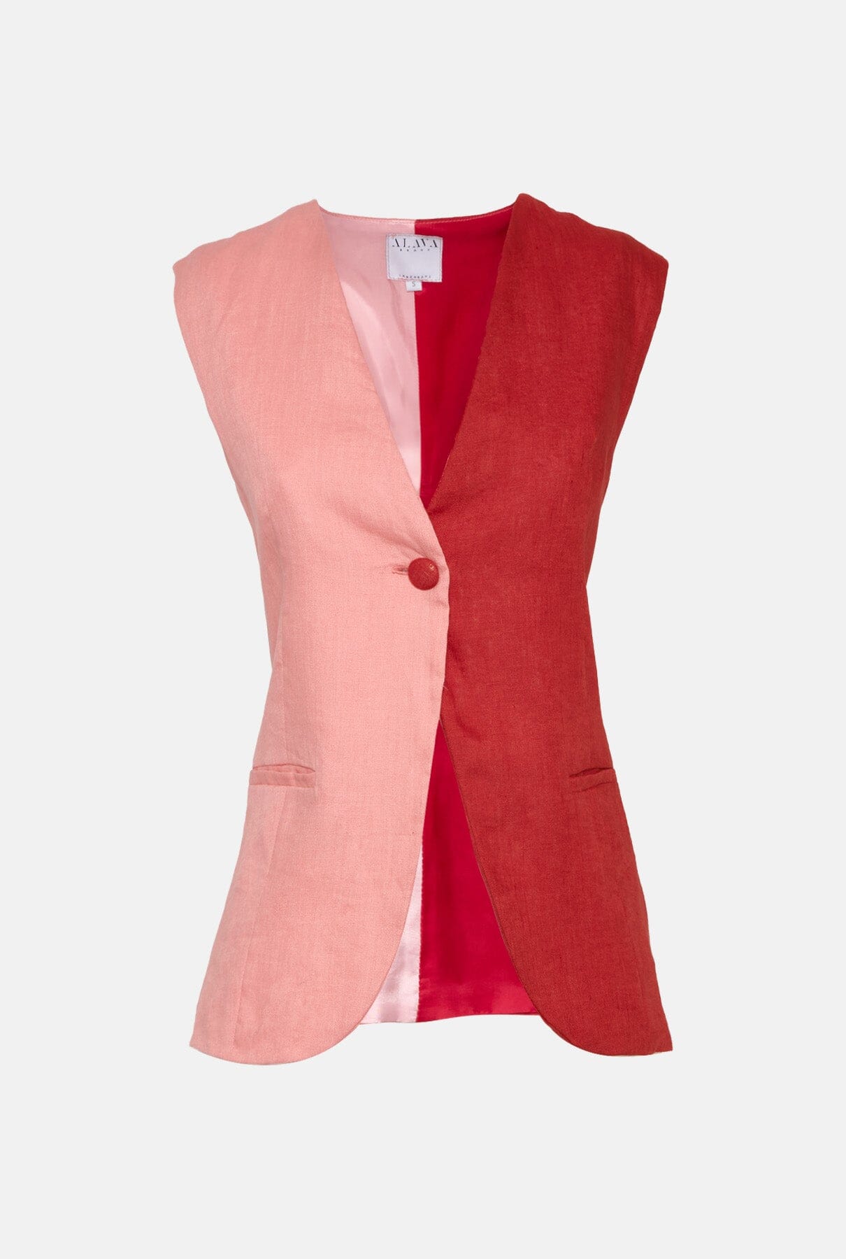 Chaleco confeccionado artesanalmente en nuestro taller de Lanzarote. Chaleco con escote en pico y manga larga. Falsos bolsillos ribeteados en la parte delantera. Forro interior a juego. Cierre frontal con botón de nácar.