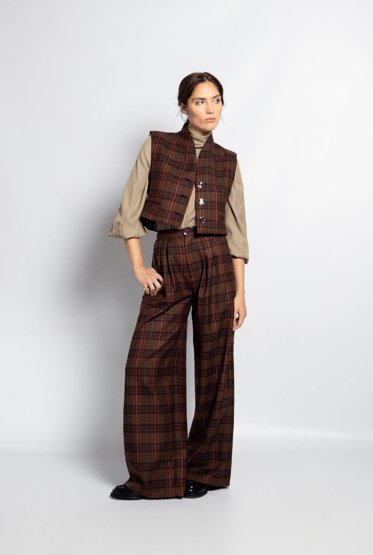 Chaleco de cuadros en tejido 100% lana.