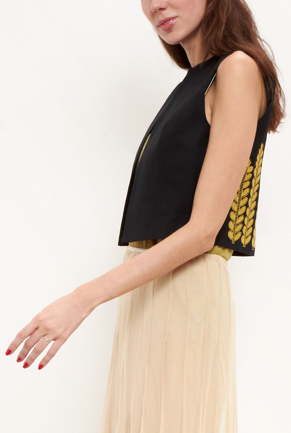 Chaleco bordado negro. Diseñado por Kolonaki.