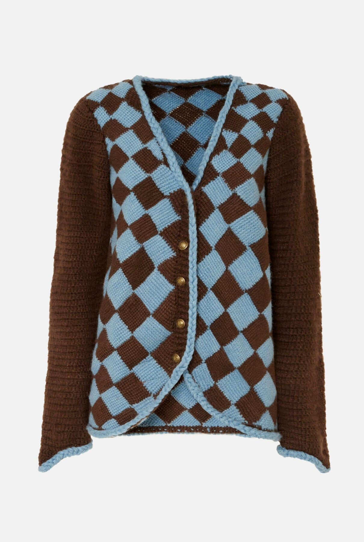 Cárdigan tejido a mano en punto crochet con aguja crochet, hilo 100% Alpaca con botones metálicos estilo antiguo español.