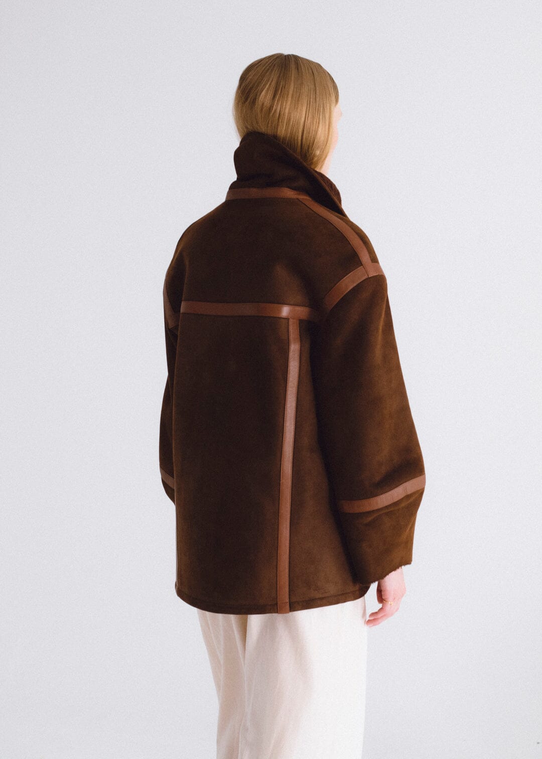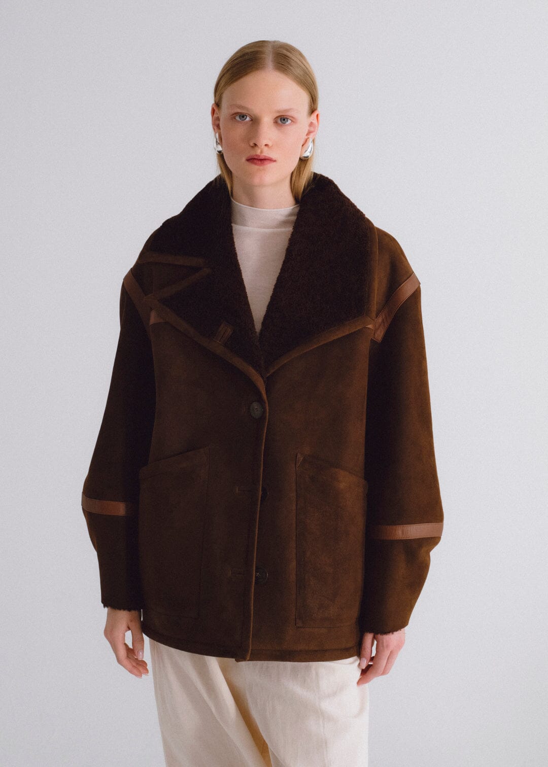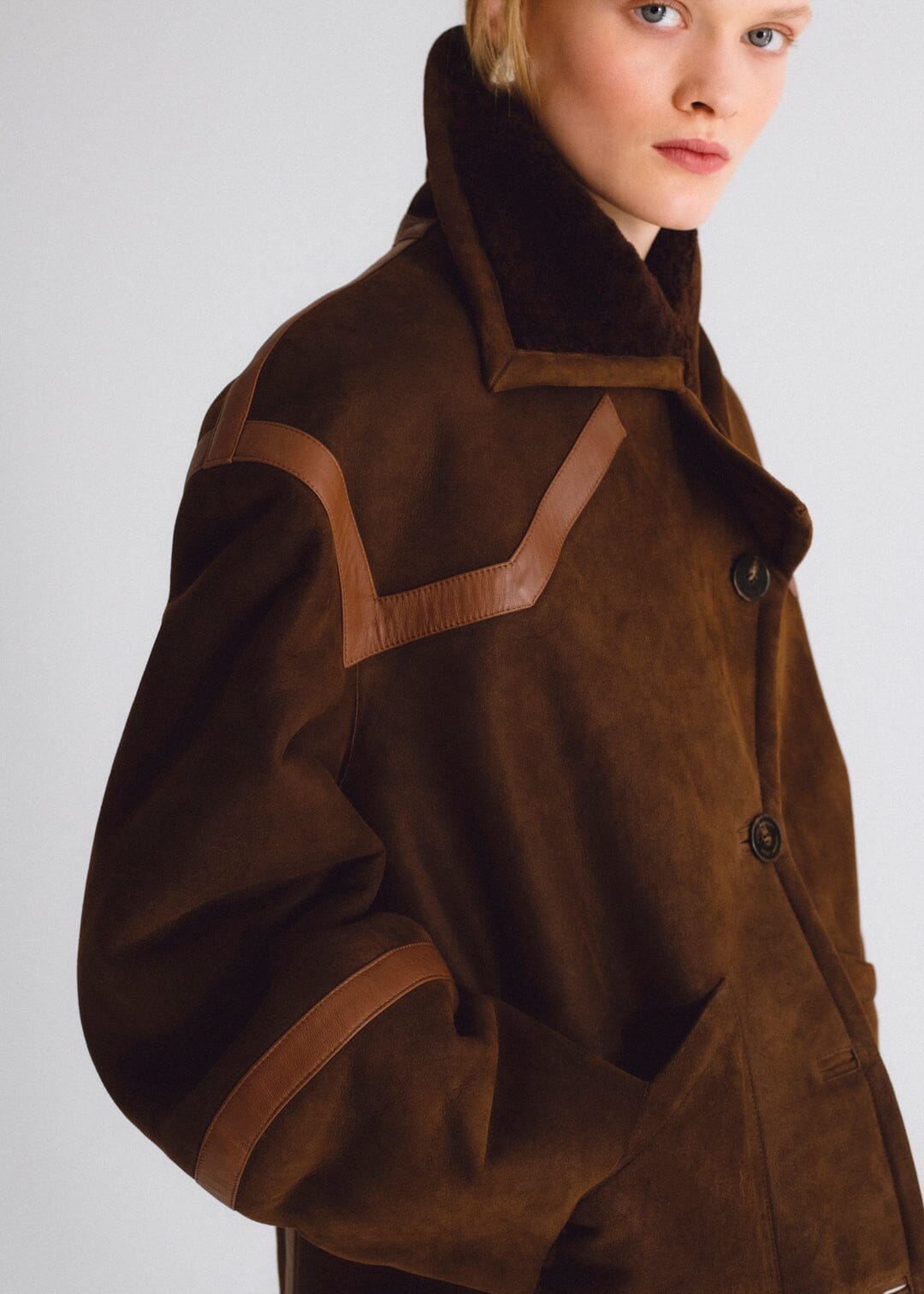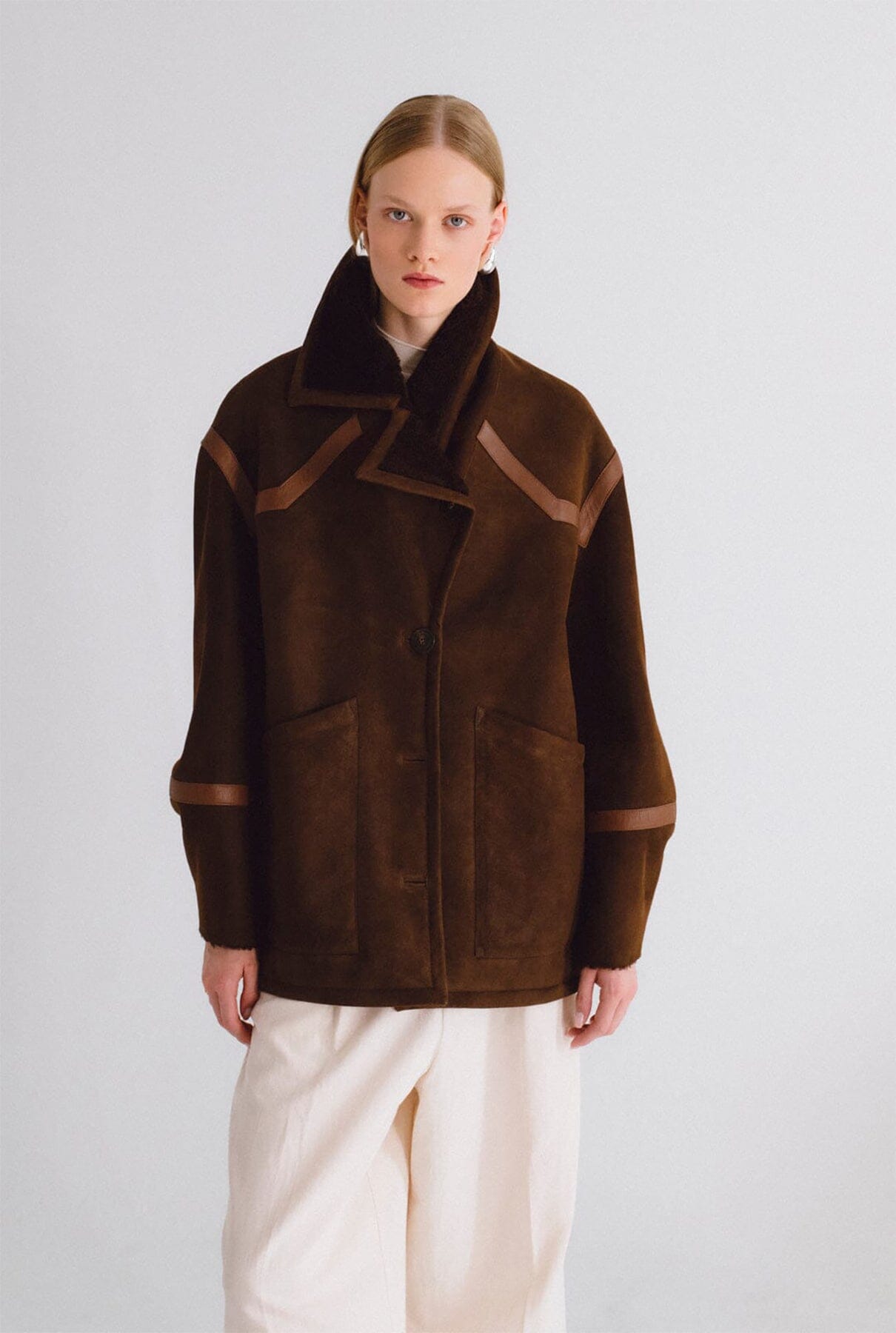 Chaqueta de pelo y detalles de cuero