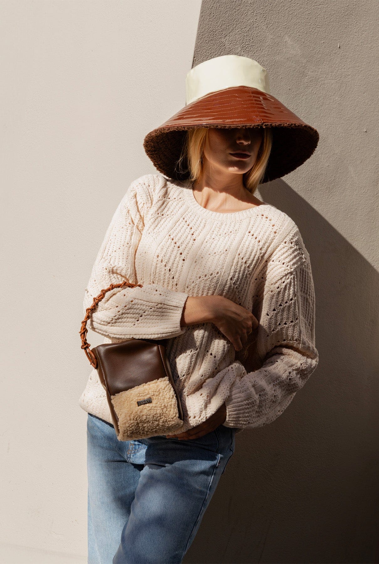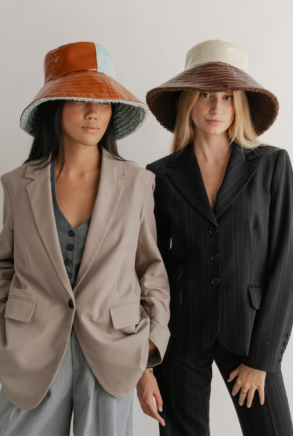 Sombrero Charolito en tonos hielo y café. Ideal para días lluviosos y fríos. Quedará fabuloso con cualquier look invernal.